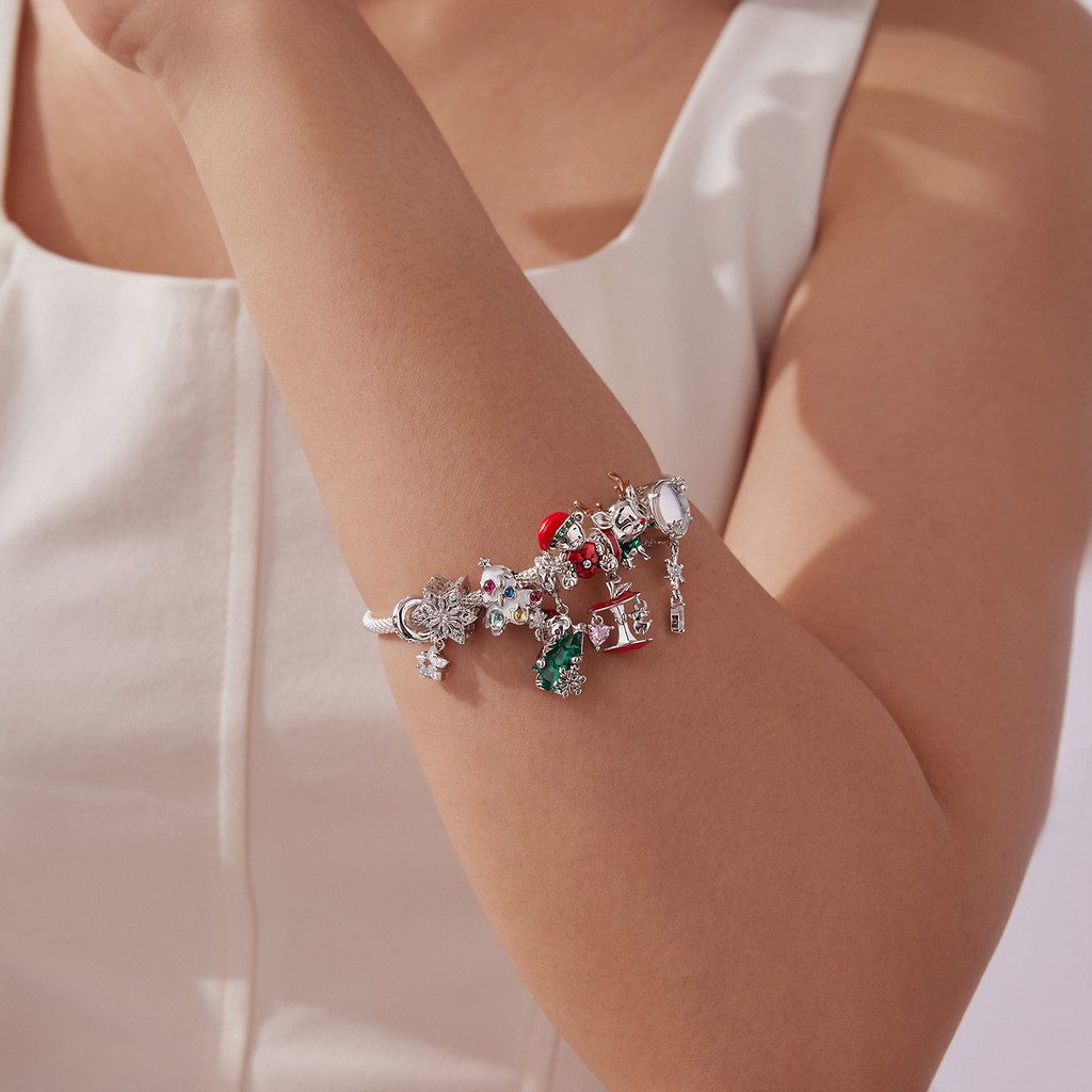 Amuleto De Natal Fofo E Delicado Bamoer Em Prata Esterlina S925 | Pingente De Árvore , Rena , Boneco De Neve Para Pulsei