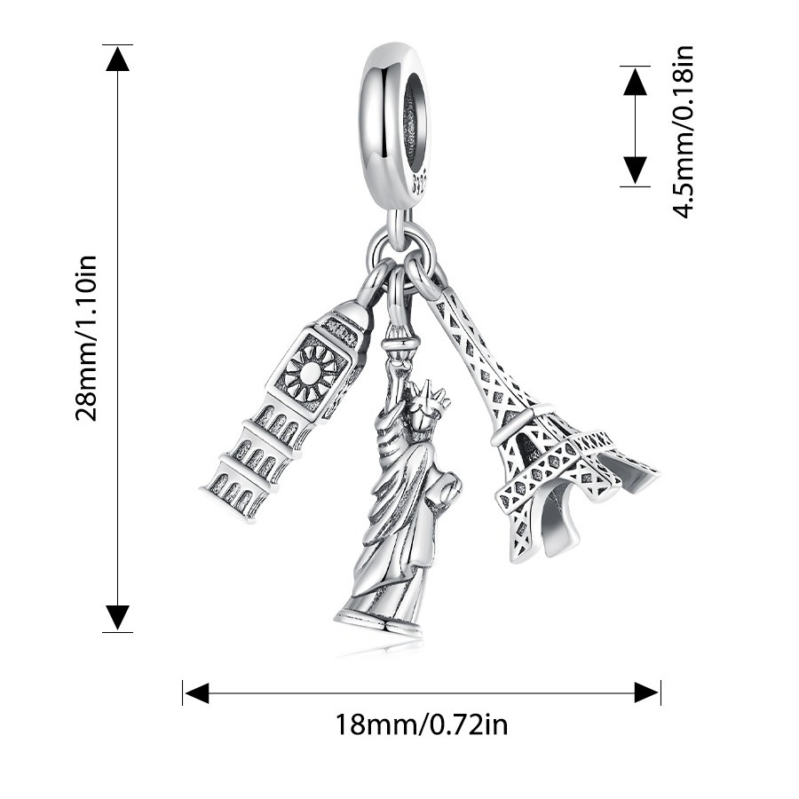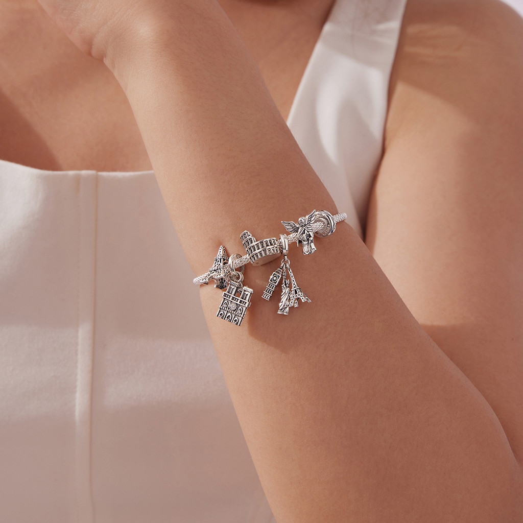 Amuletos De Prata Esterlina S925 Da Série De Referências Famosas Bamoer | Pulseira Arquitetônica Contas DIY Presente Par