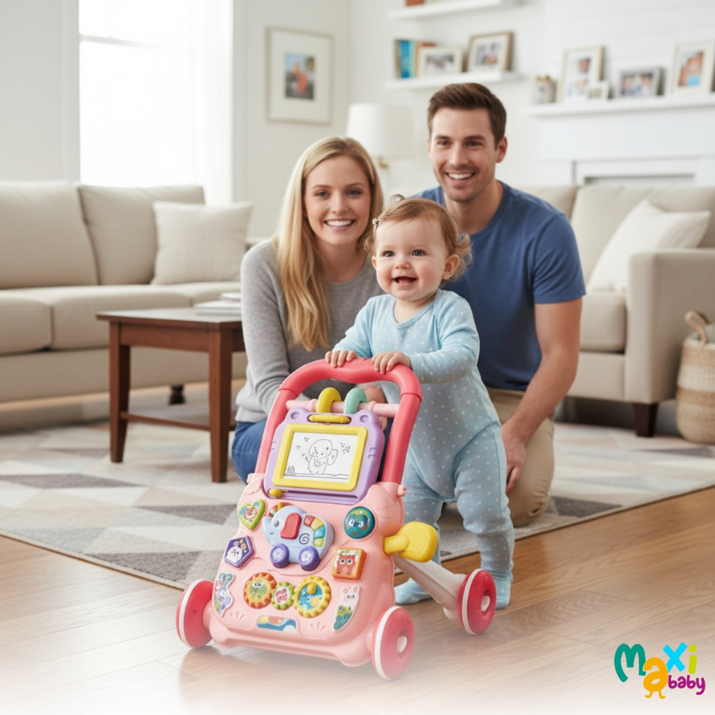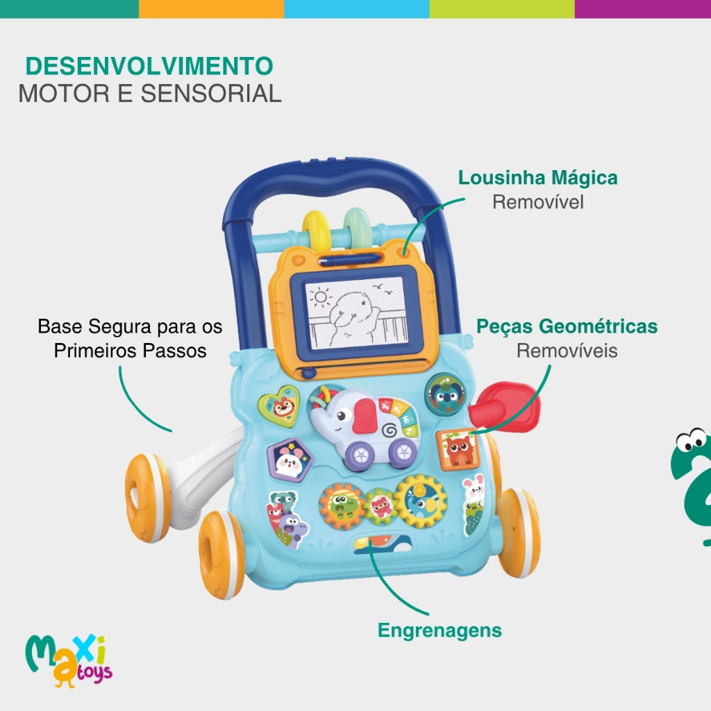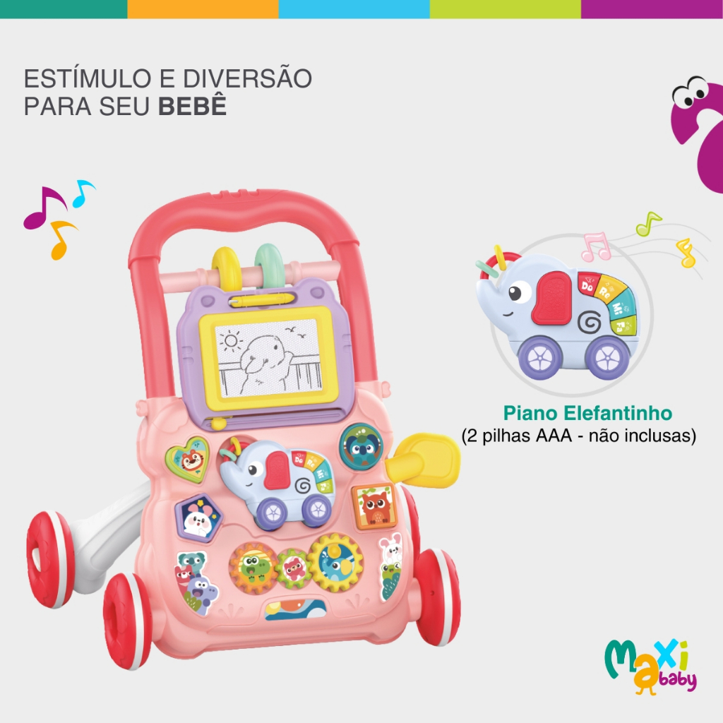 Andador Infantil Empurrar Elefante Maxi Baby Educativo Musical Lousa Mágica Interativo Azul Rosa