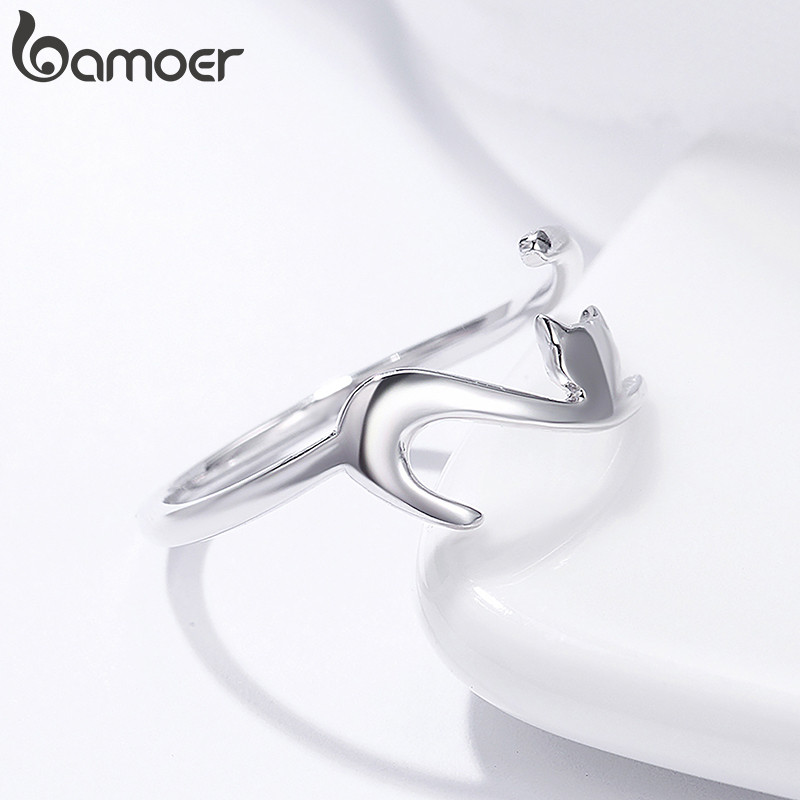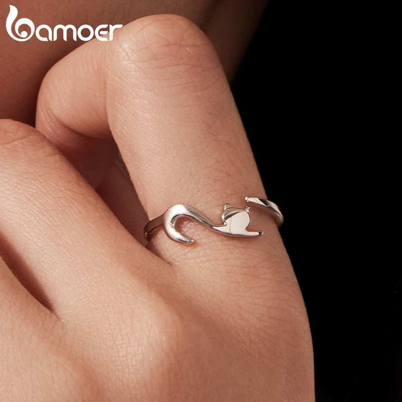 Anel Aberto Bamoer Tamanho Ajustável Gato Preto Requintado Joias Da Moda Presentes Para Mulheres