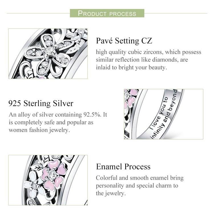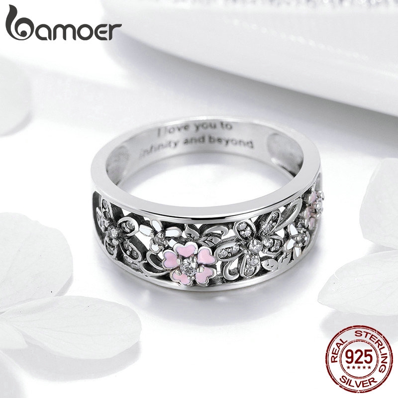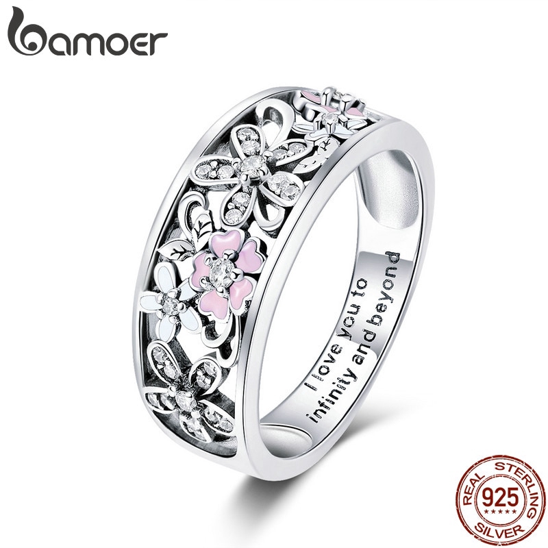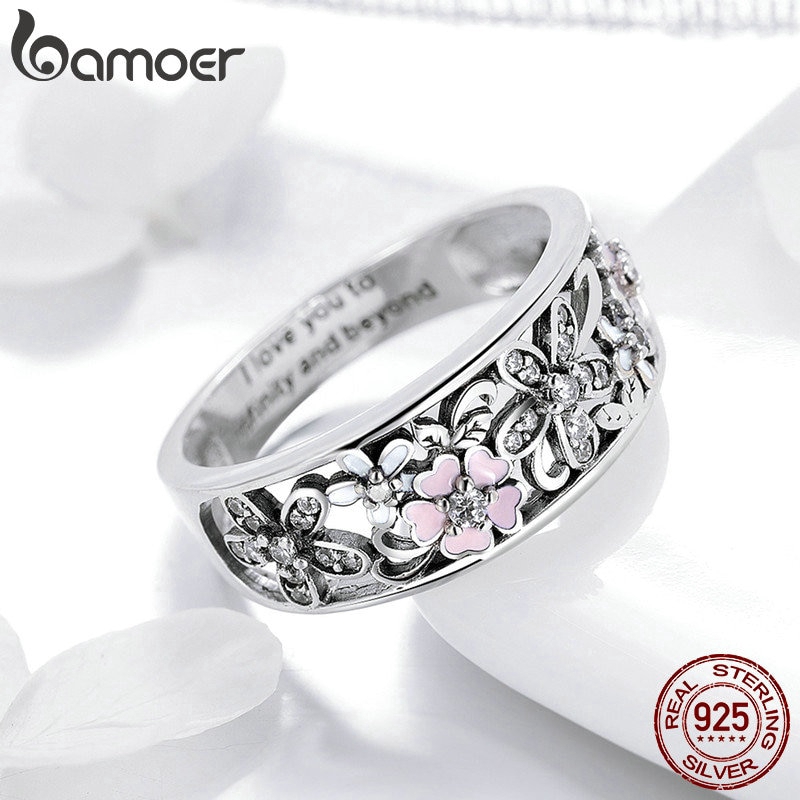 Anel Bamoer 925 Prata Margarida Flor Infinito Anéis De Pavimento De Amor Para Mulheres Jóias De Casamento