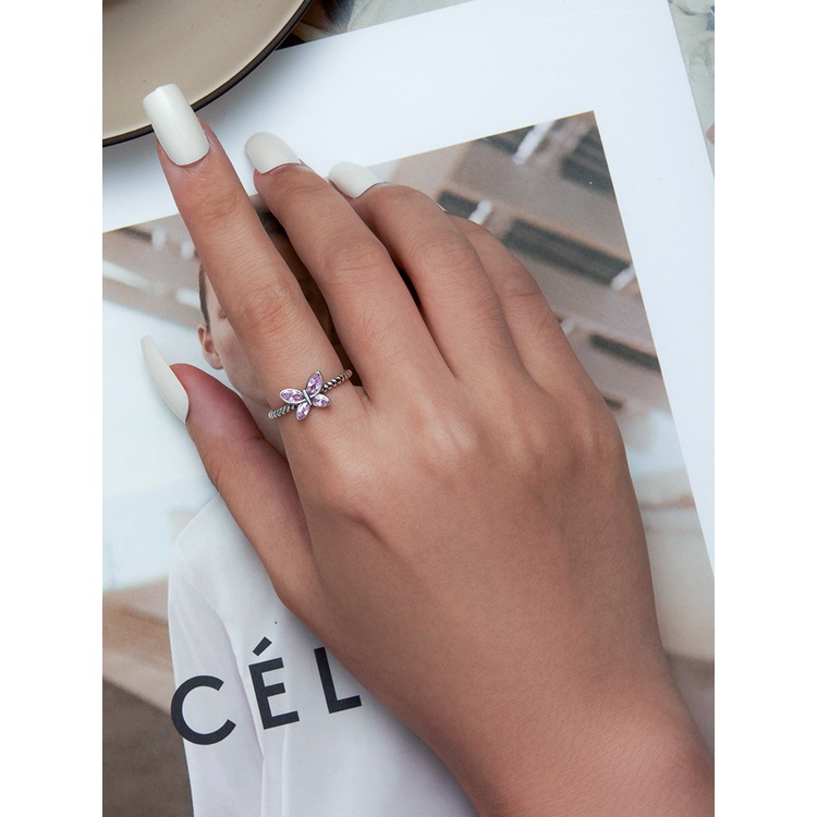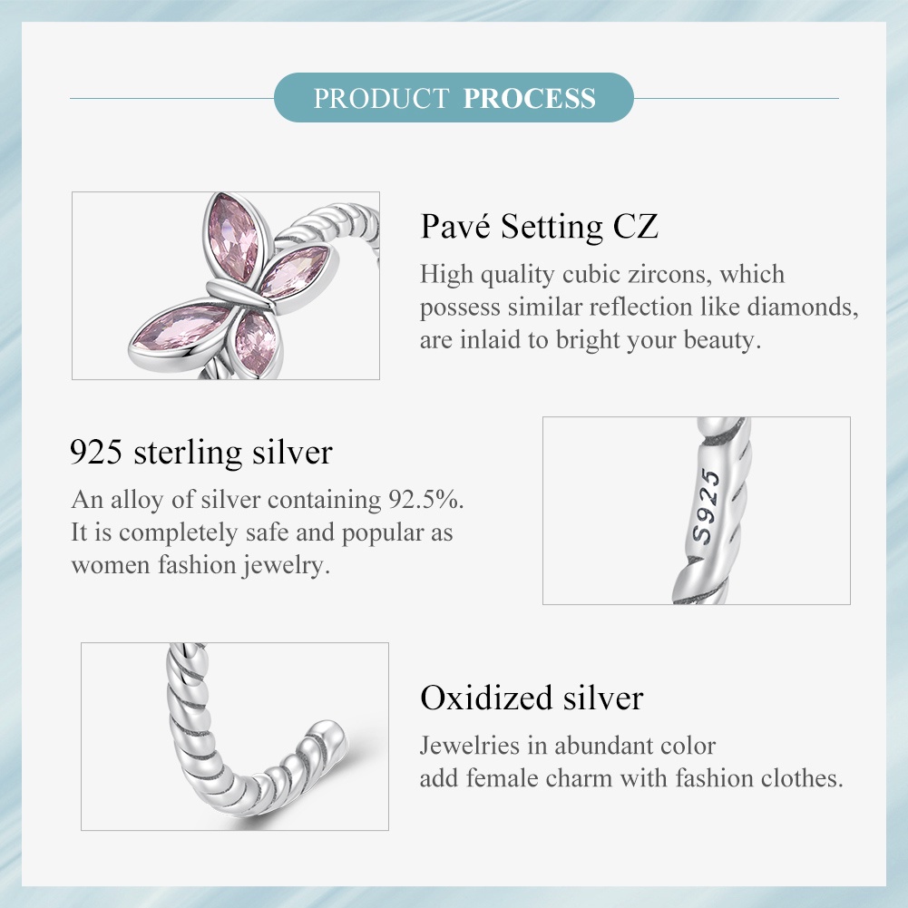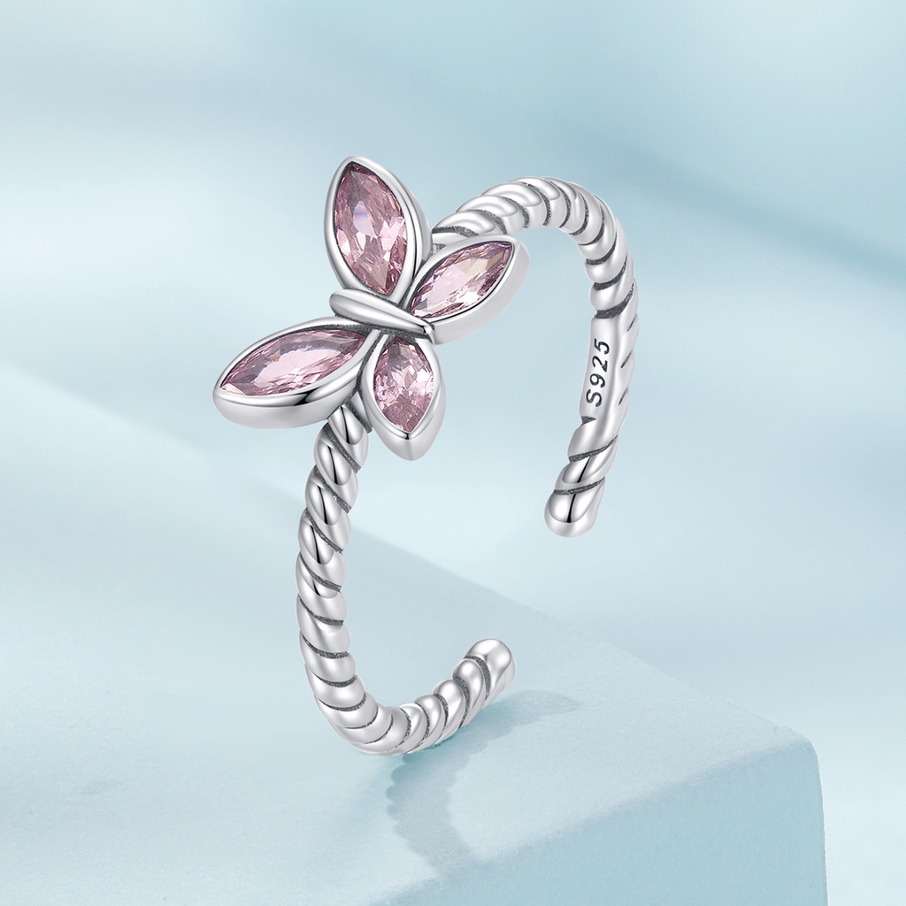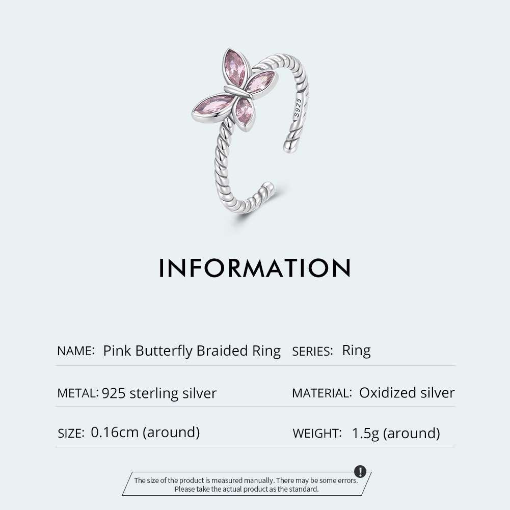 Anel Bamoer 925 Prata Rosa Borboleta Trançada Jóias Da Moda Para Mulheres Presente