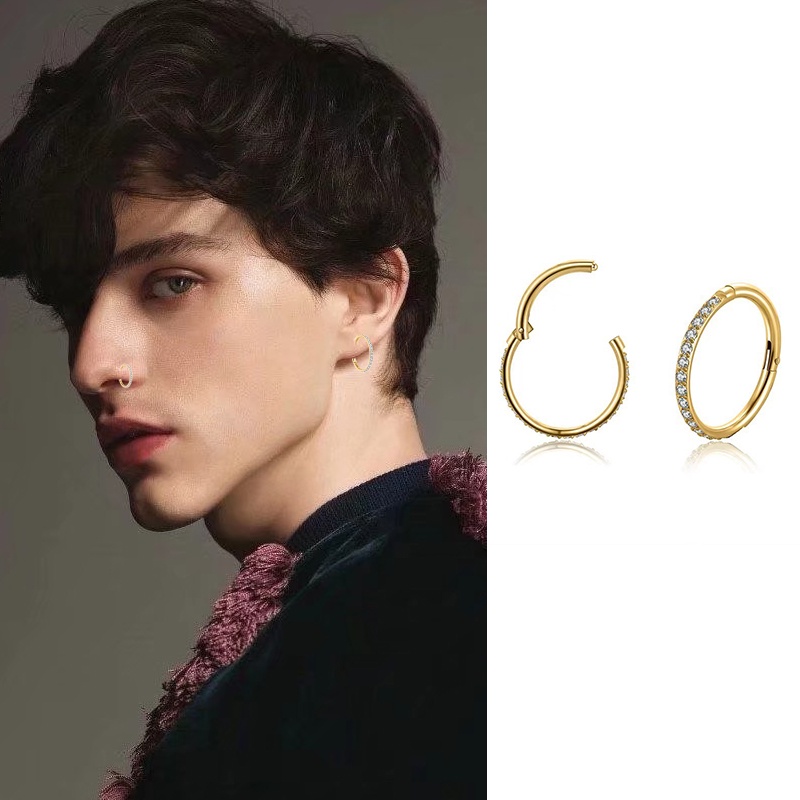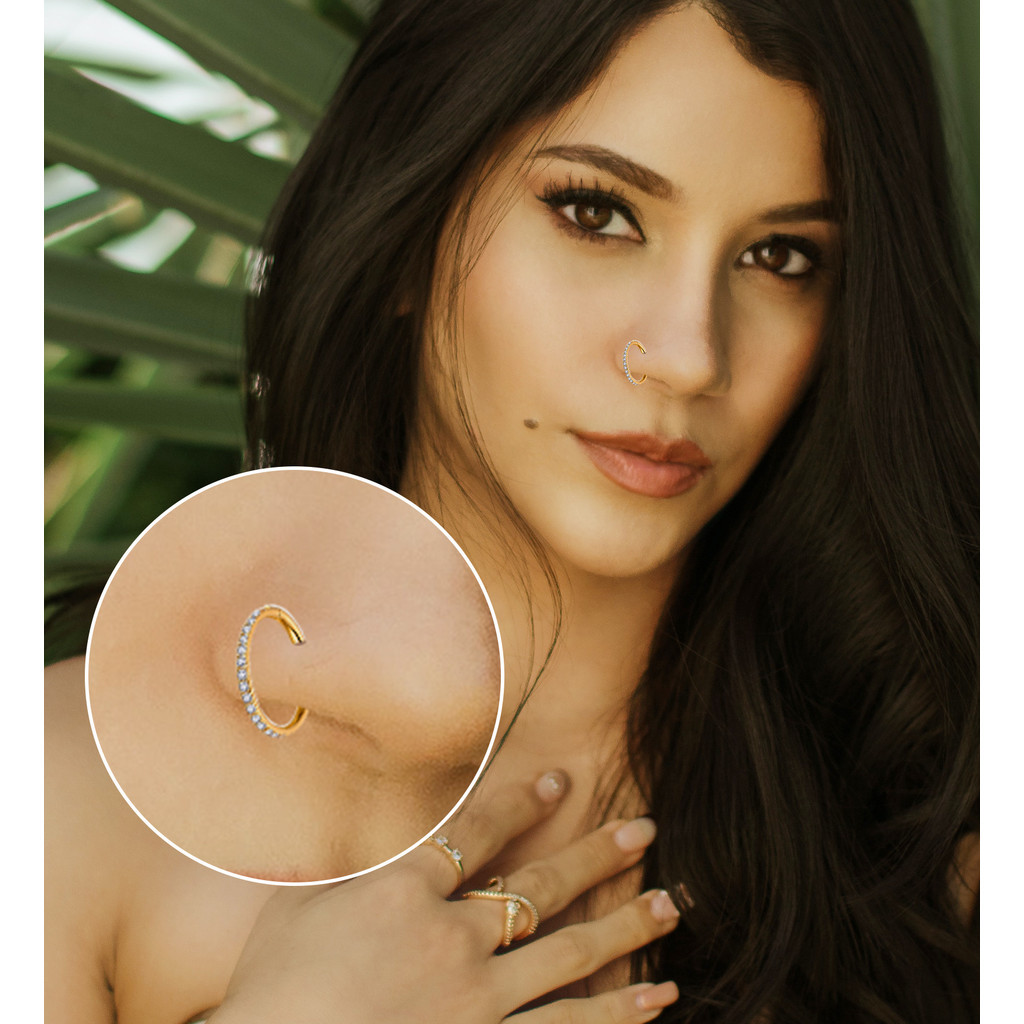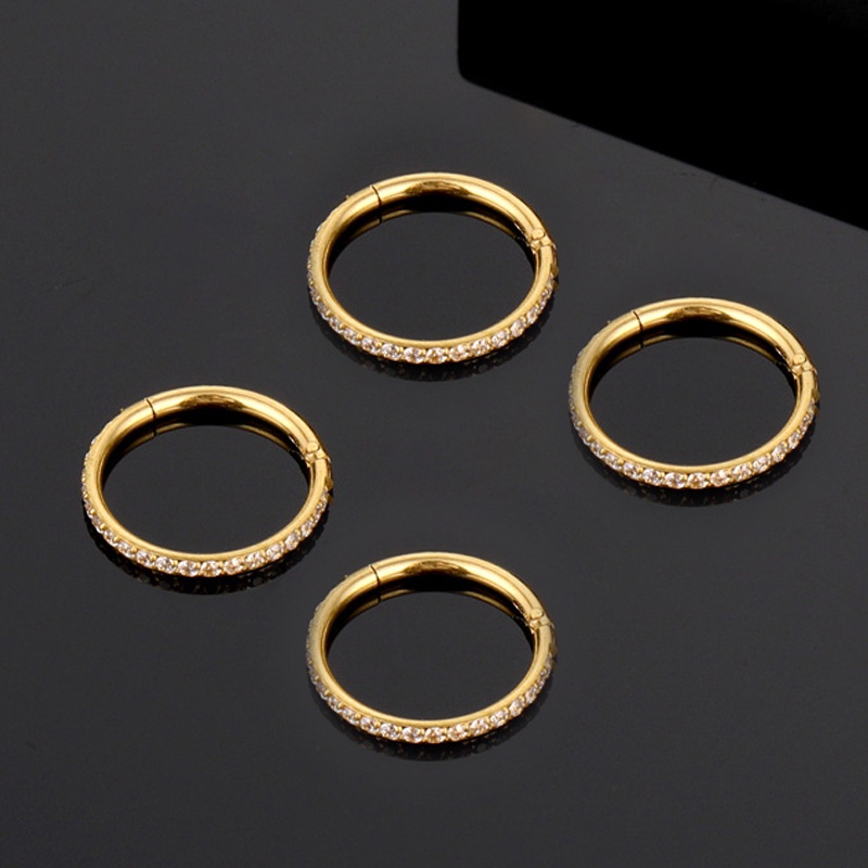 Anel Clicker De Septo De Titânio G23 Com Joia Corporal De Argola Articulada Hipoalergênica CZ Para Piercing
