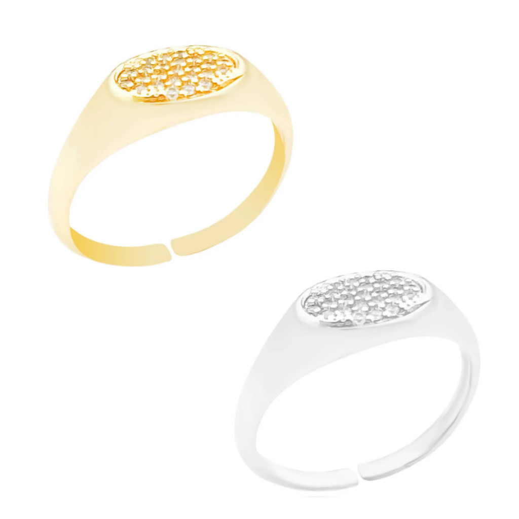Anel Cravejado Elegante Banhado a Ouro 18K/Prata 925 Feminino Moderno