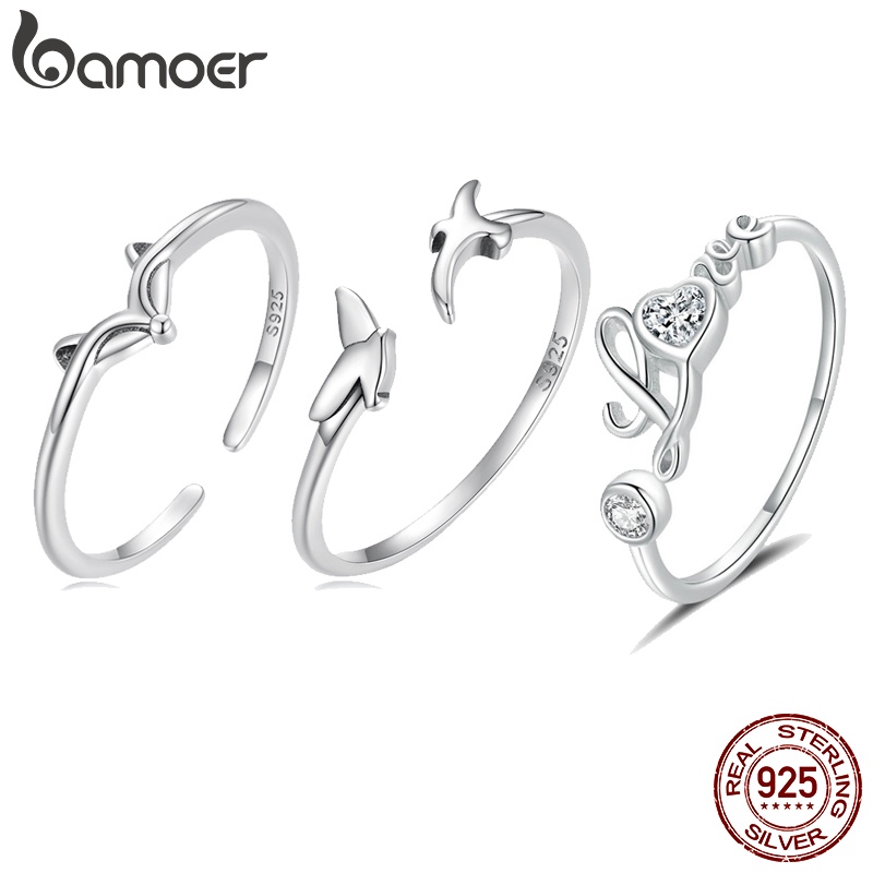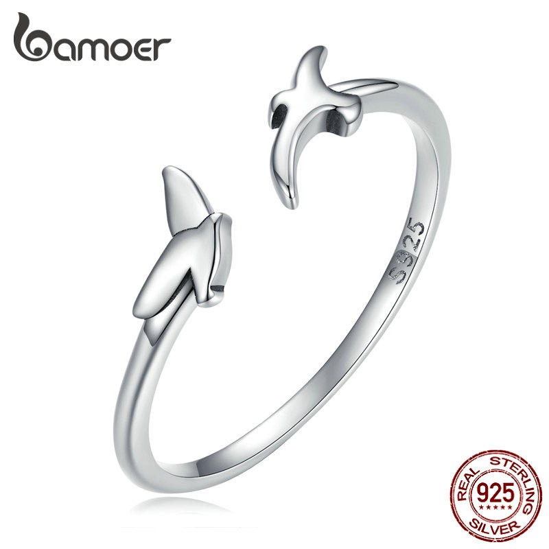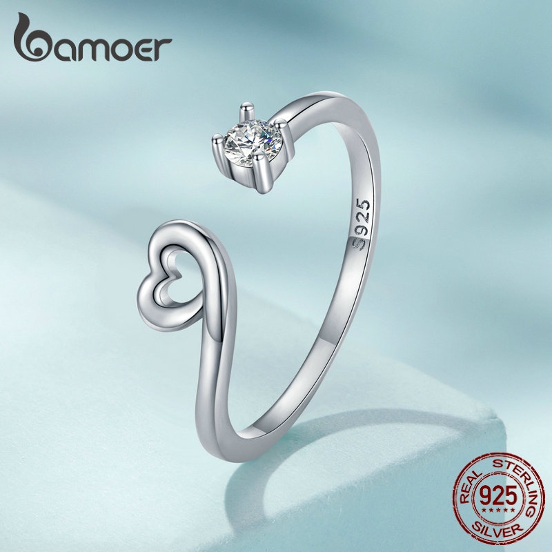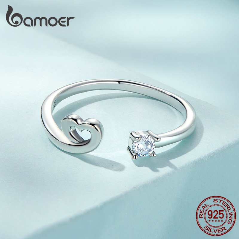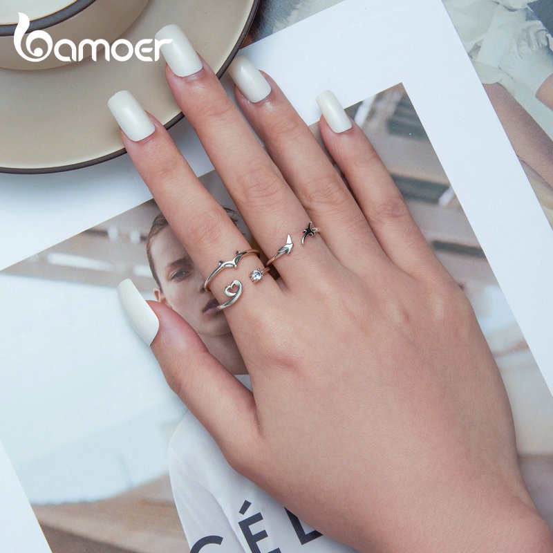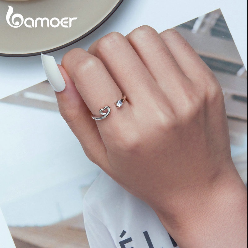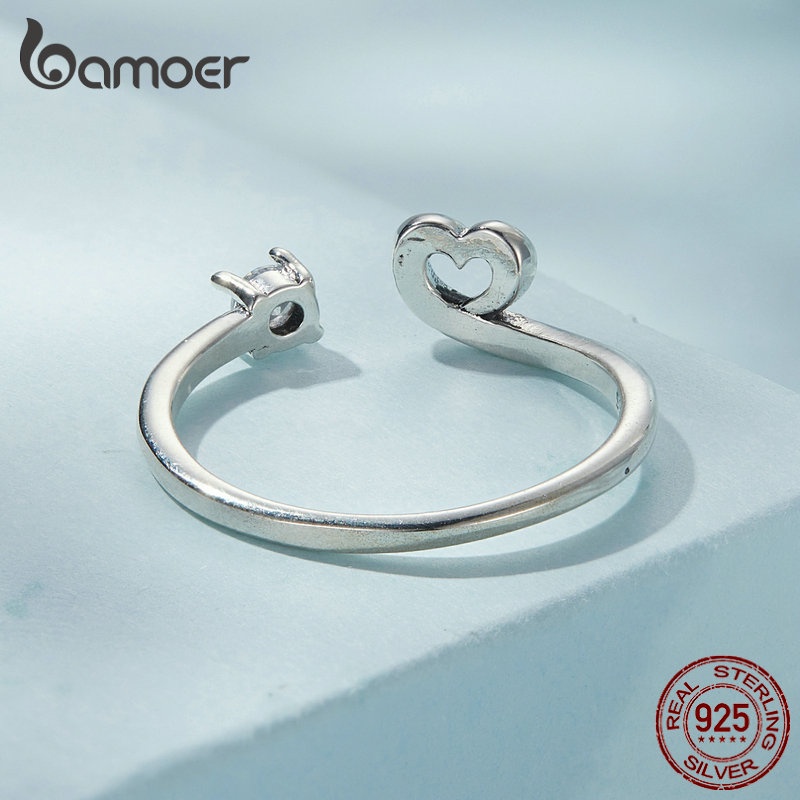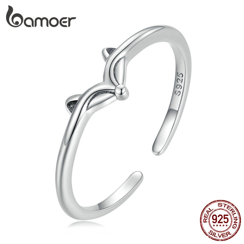 Anel De Abertura Bamoer 925 Prata Simples Jóias Coração De Raposa Para Anéis De Dedo Feminino