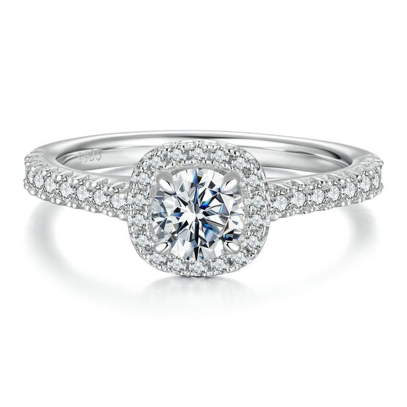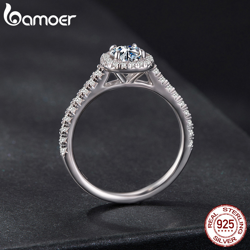 Anel De Prata Esterlina 925 Bamoer Quadrado Halo Moissanite Joias Da Moda Presentes Para Mulheres