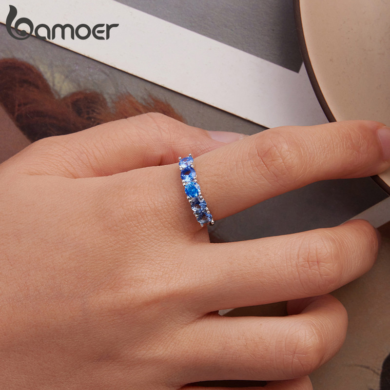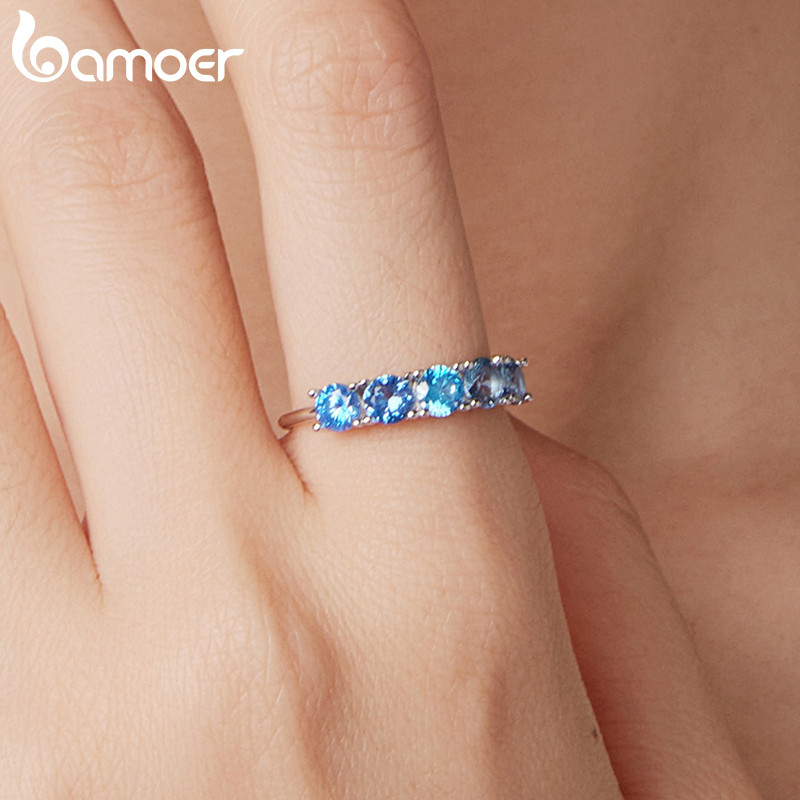 Anel De Prata Esterlina 925 Original Bamoer Aquamarine Star Joia Presente Para Mulheres