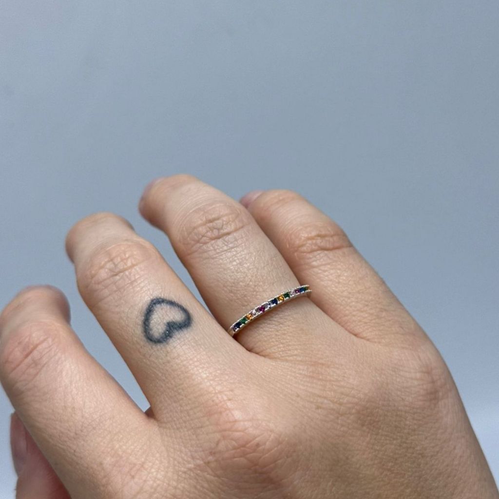 Anel Meia Aliança Aparador Zircônias Coloridas Prata 925