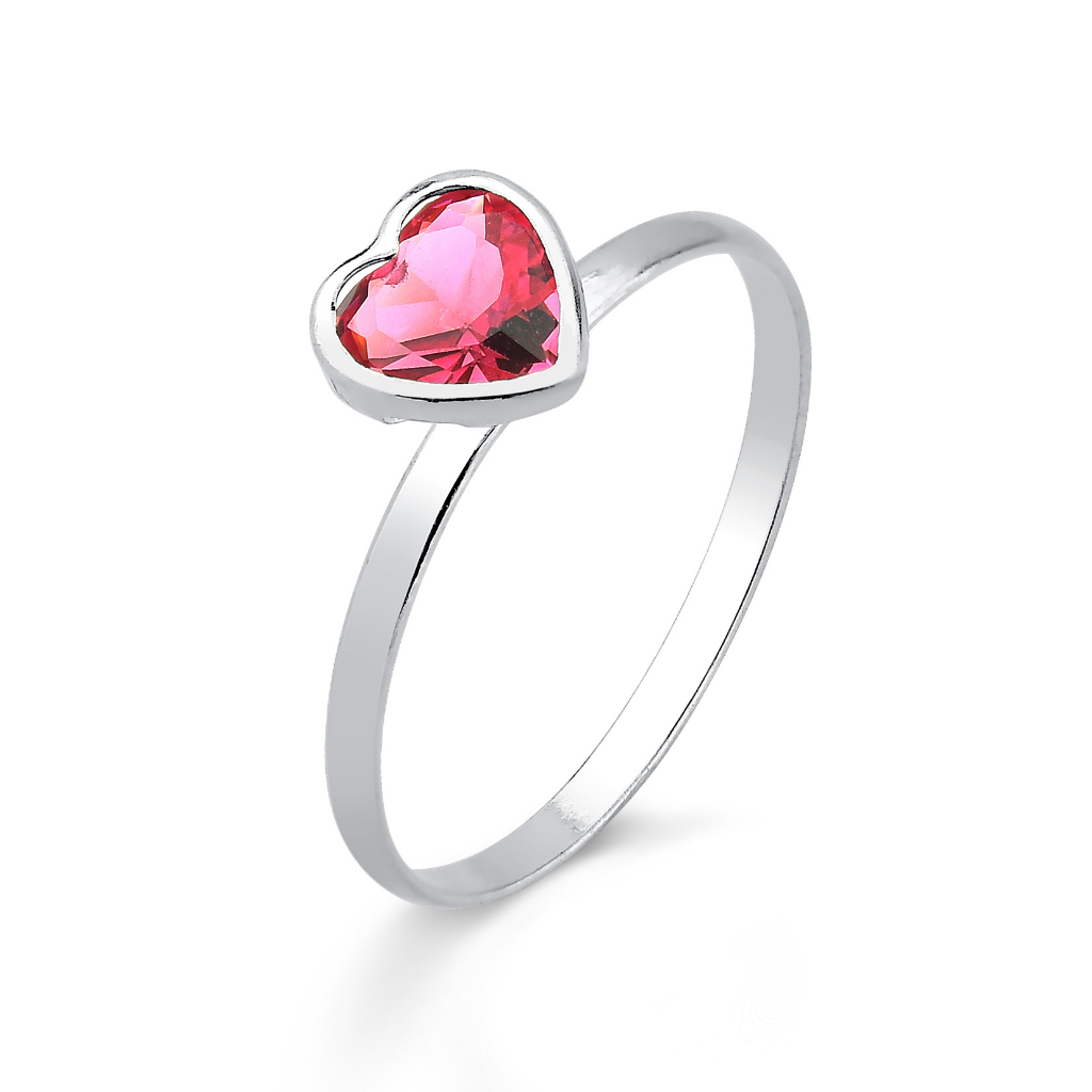 Anel Solitário de Prata 925 Coração Cereja