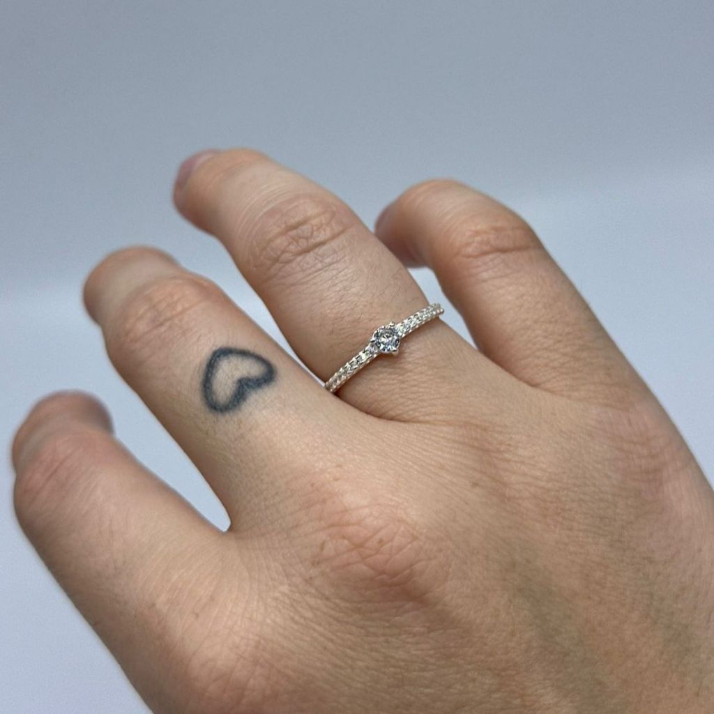 Anel Solitário de Prata 925 Ponto de luz Redondo com Zirônias Cravejadas