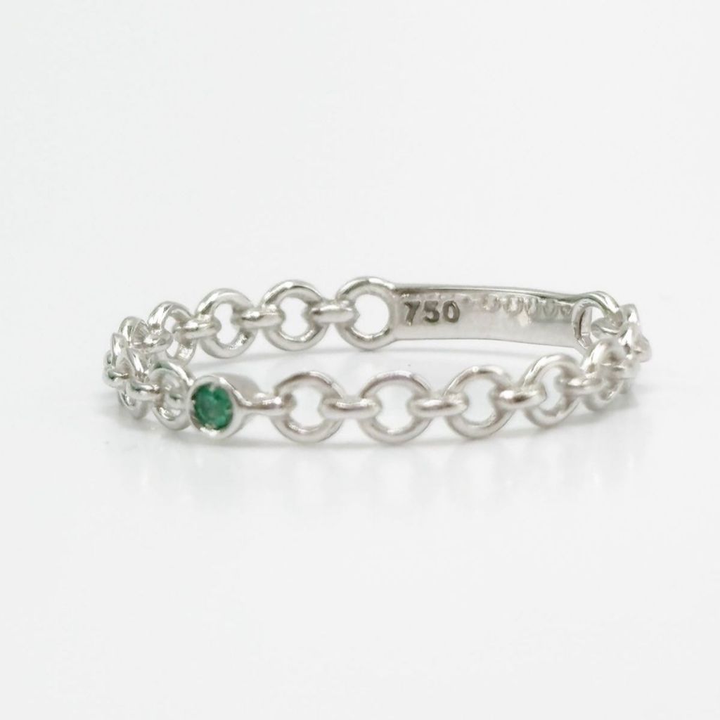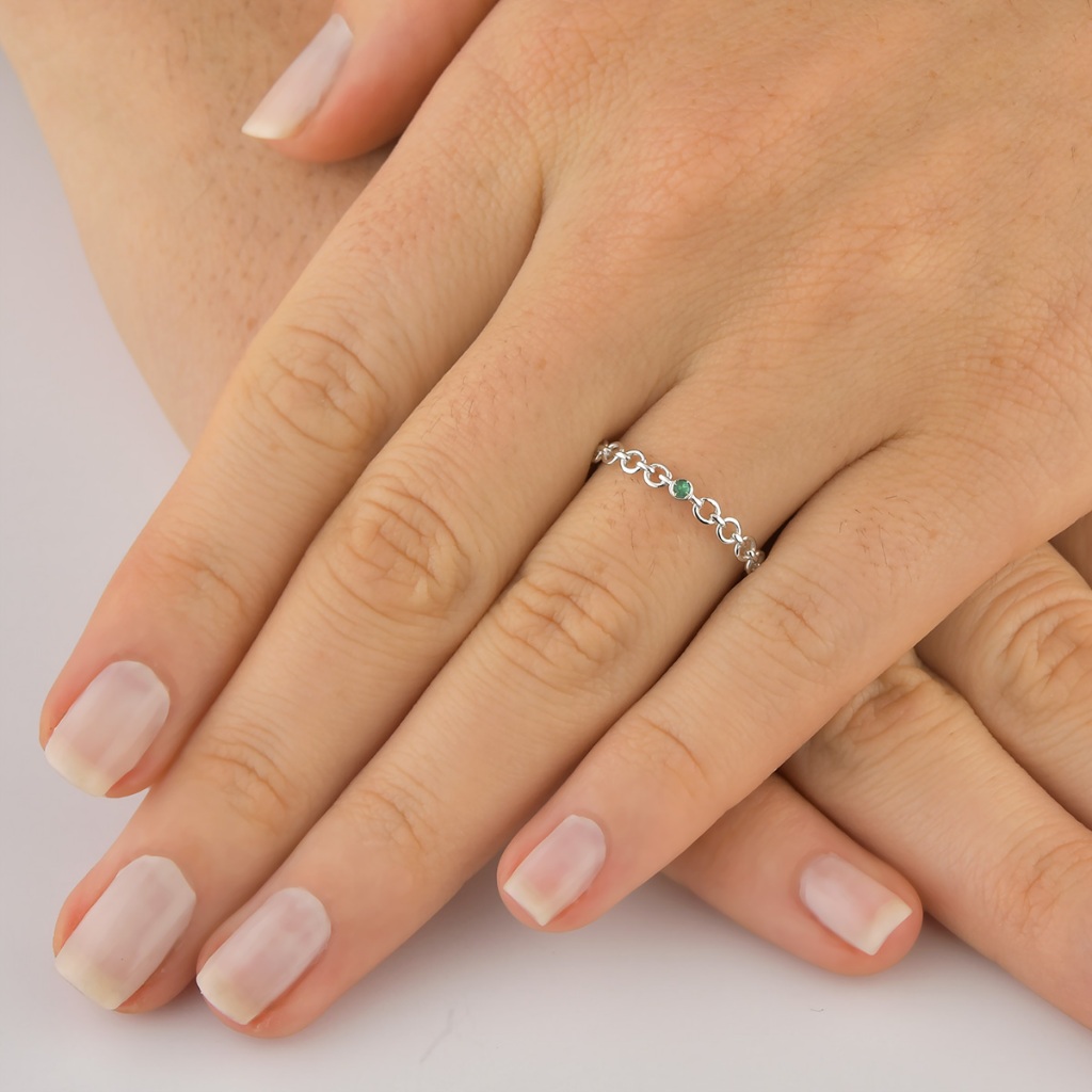 Anel de Ouro Branco 18k Cadeado com Esmeralda