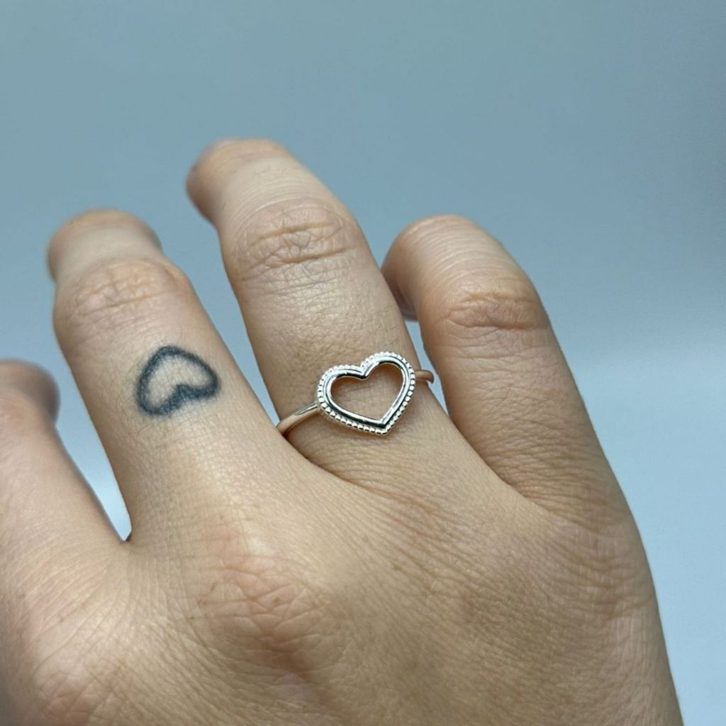 Anel de Prata 925 Coração Vazado e Detalhado