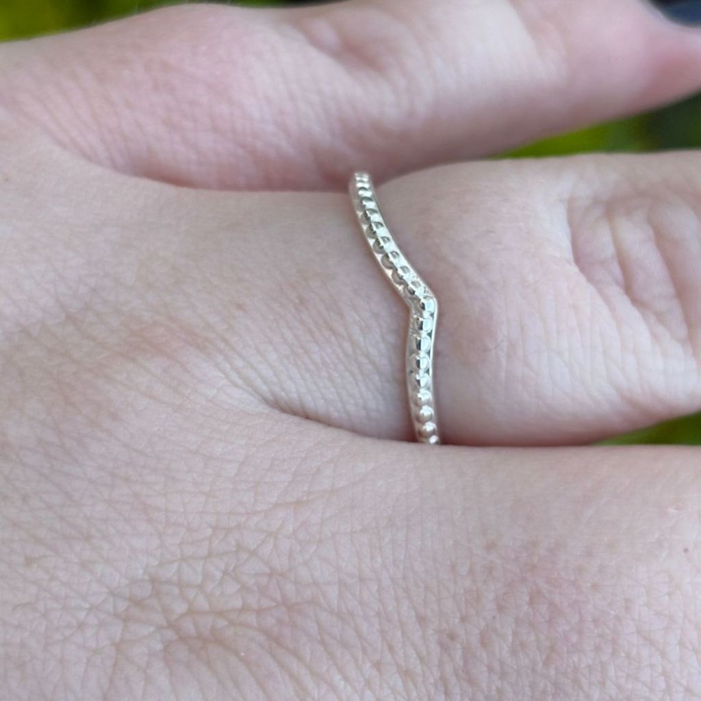 Anel de Prata 925 Formato V e Detalhado