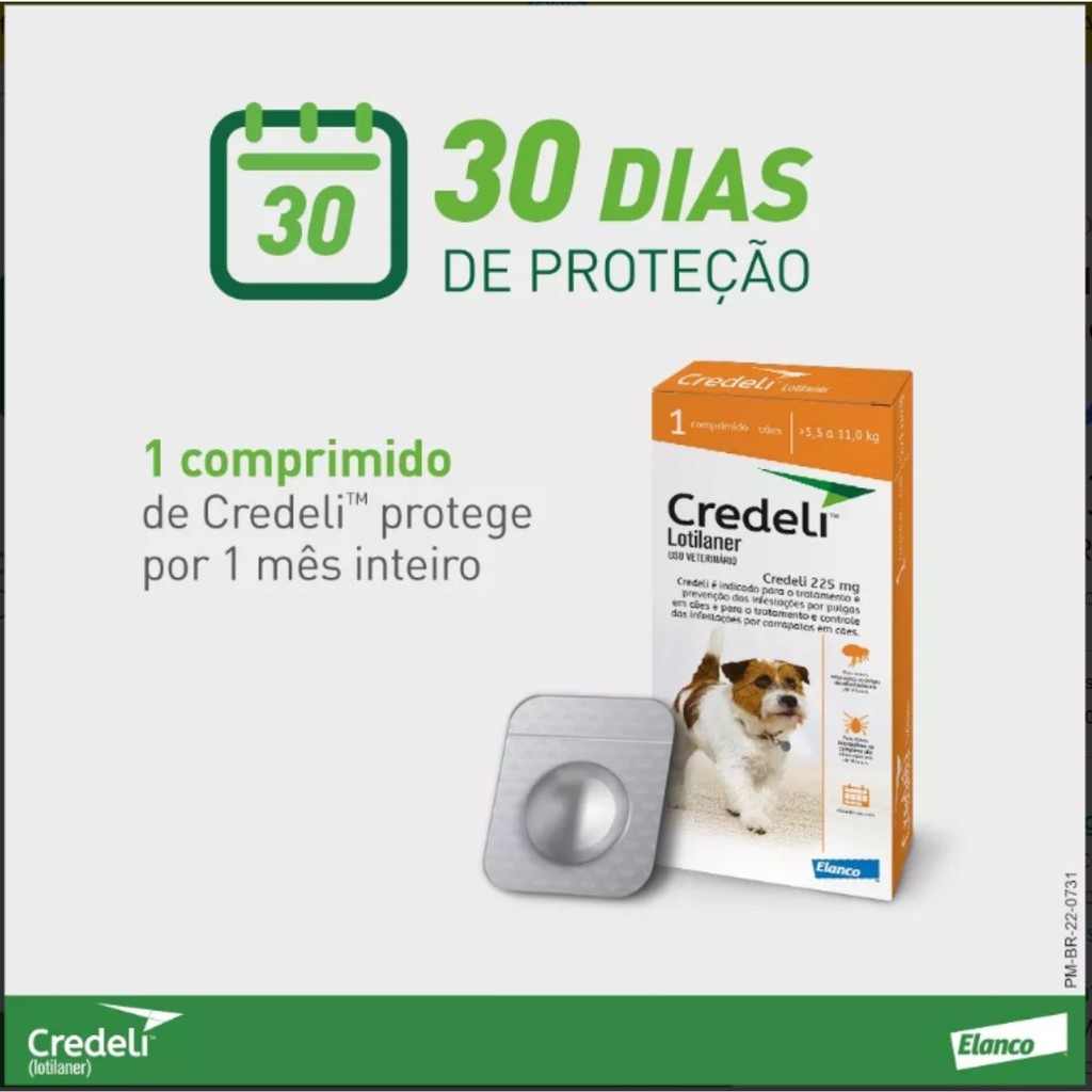 Antipulgas Cães 5,5 a 11 kg Credeli 225mg 1 Comprimido