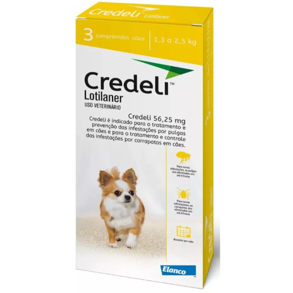 Antipulgas Para Cães 1,3 a 2,5 kg Credeli Tab 3 Comprimidos