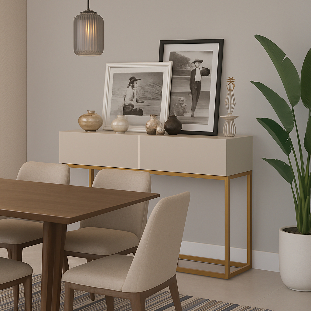 Aparador Buffet Eros 90cm Industrial 2 Gavetas Corrediças Telescopica Pé de Ferro Dourado