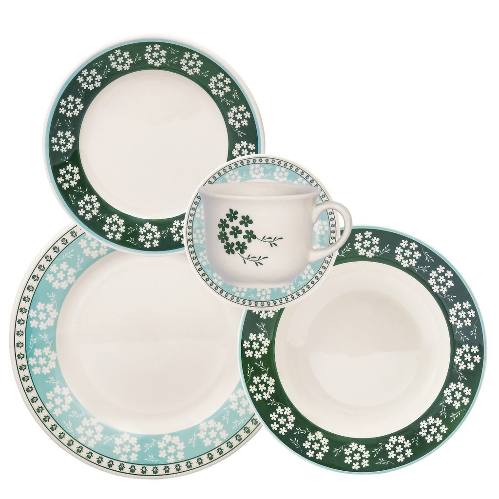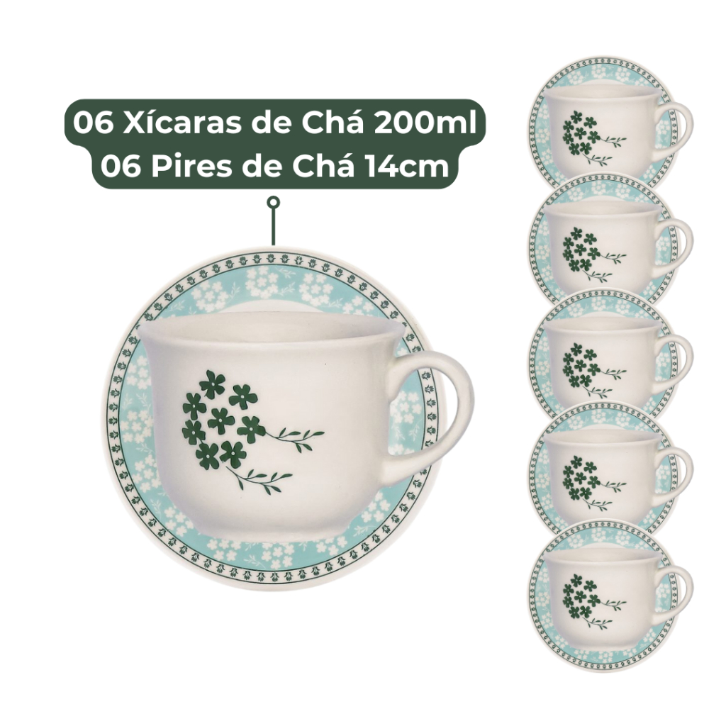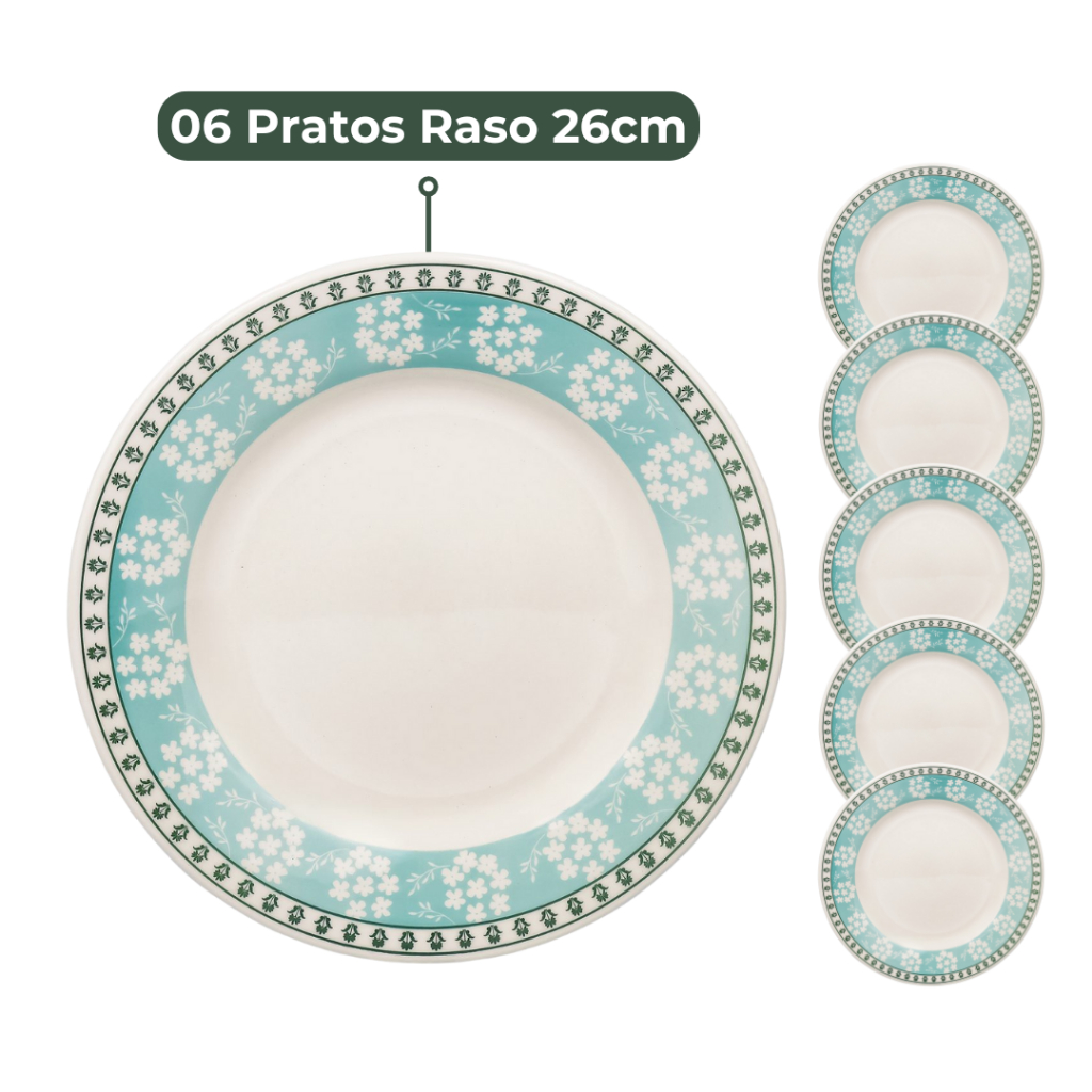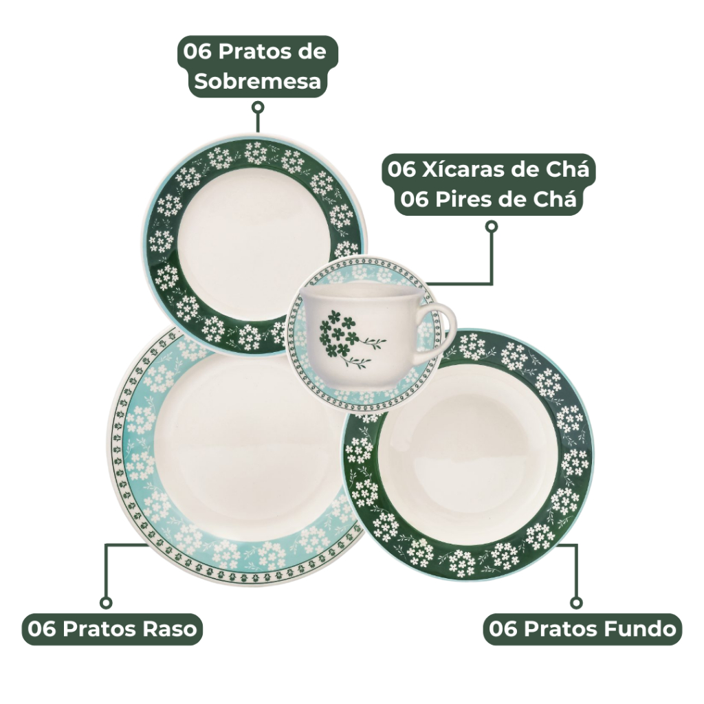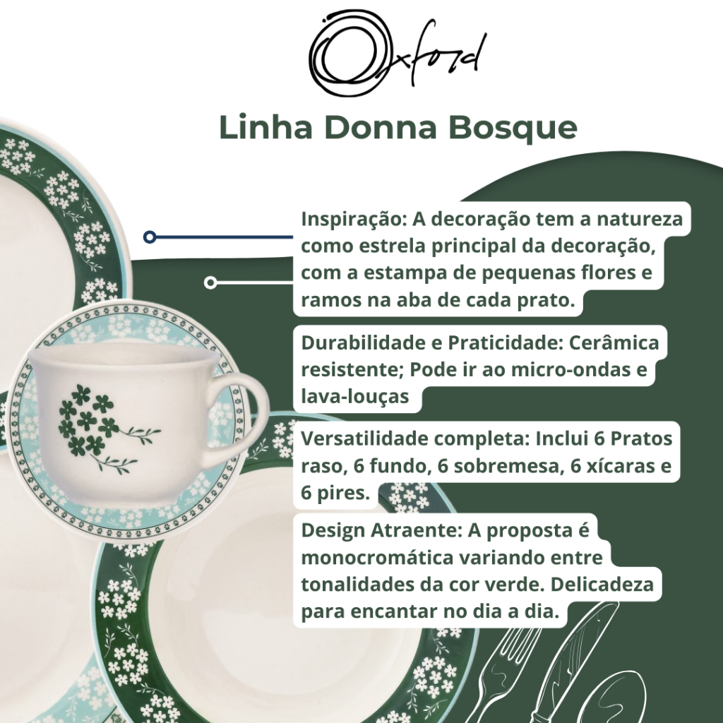 Aparelho Jogo de Jantar e Chá 30 Peças Bosque Jogo Pratos e Xícaras Oxford Biona