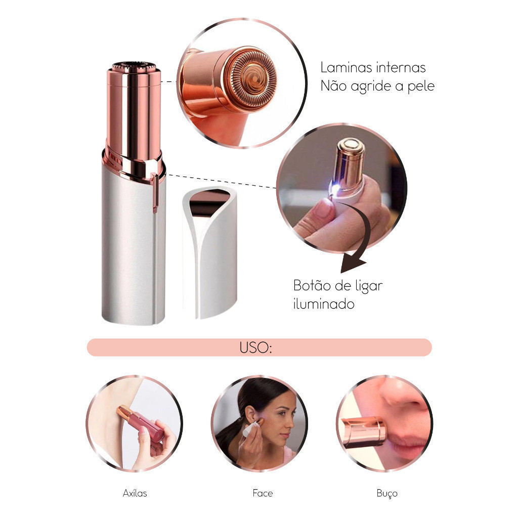 Aparelho portátil para remoção de pelos faciais, em formato de batom, aparador de pelos a bateria.