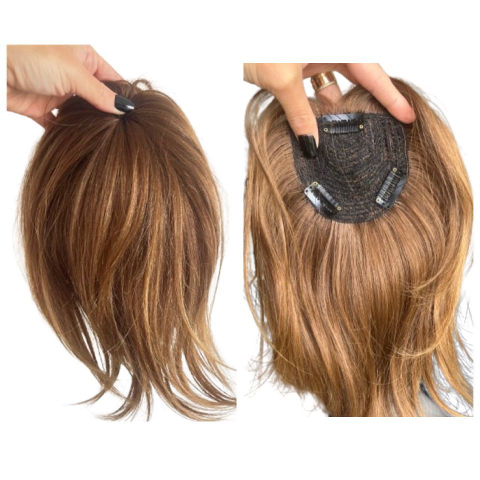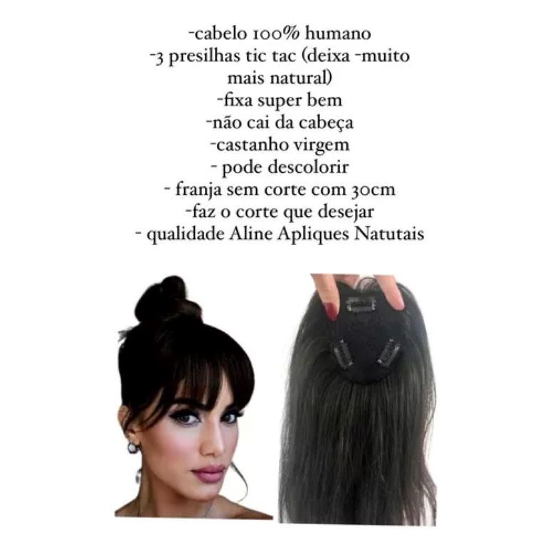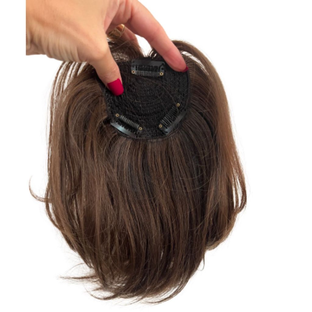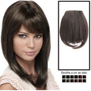 Aplique Franja Cabelo Castanho Natural 30cm com tic tac sem corte