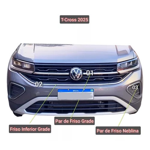 Aplique Kit Cromado T-cross 2025 Detalhe Friso Dianteiro
