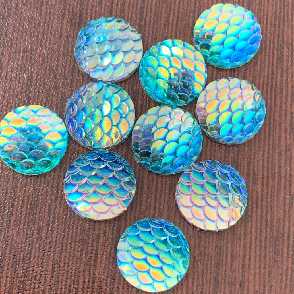 Apliques Chaton Escama Fundo do Mar Azul Furta Cor 12 mm e 6mm - pacote com 20 e 40 unidades