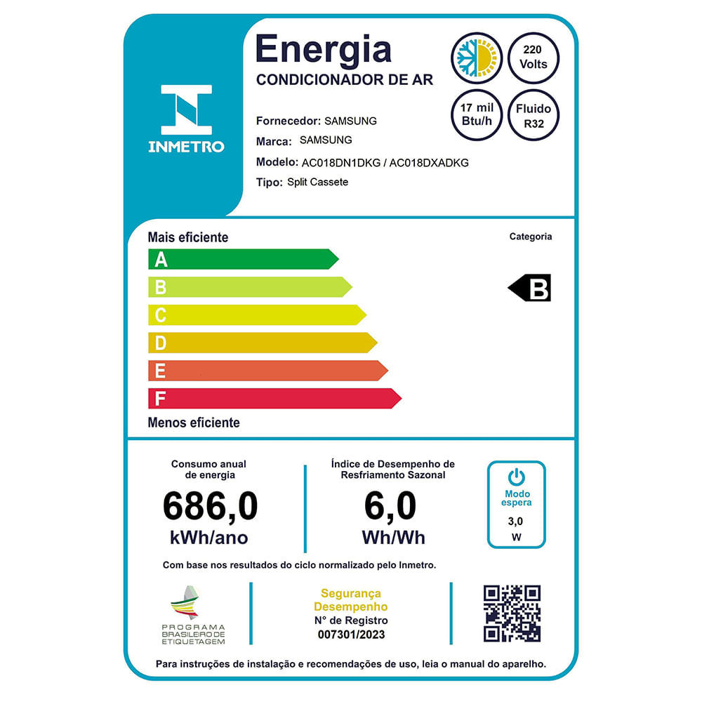 Ar Condicionado Inverter Cassete 1 via WindFree com WiFi 17.000 BTUs Quente/Frio