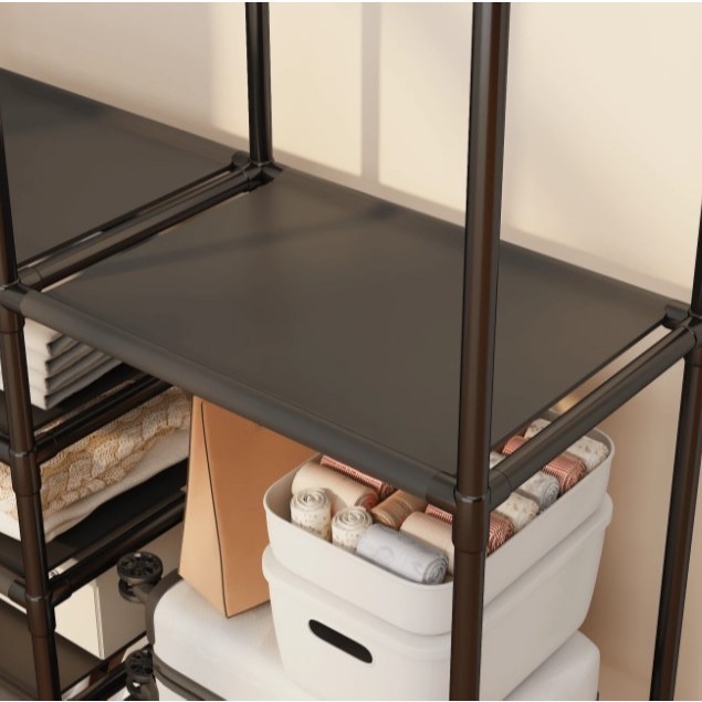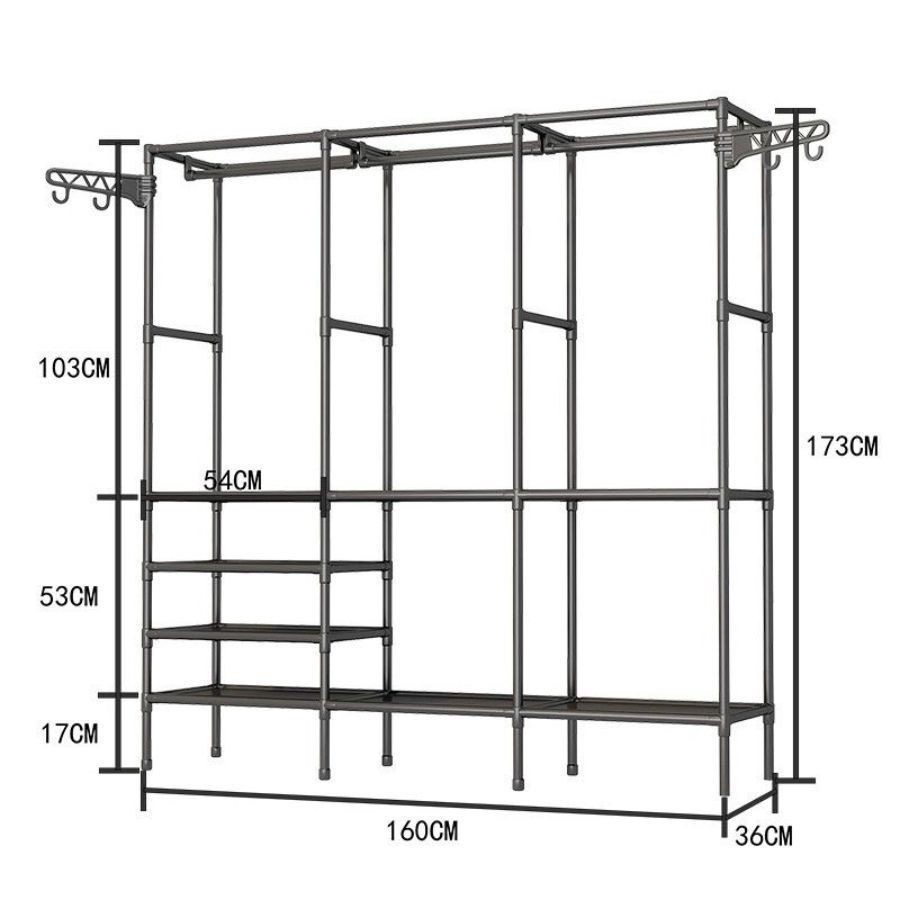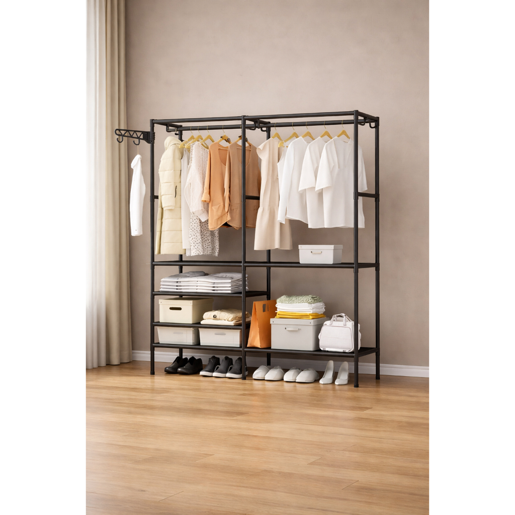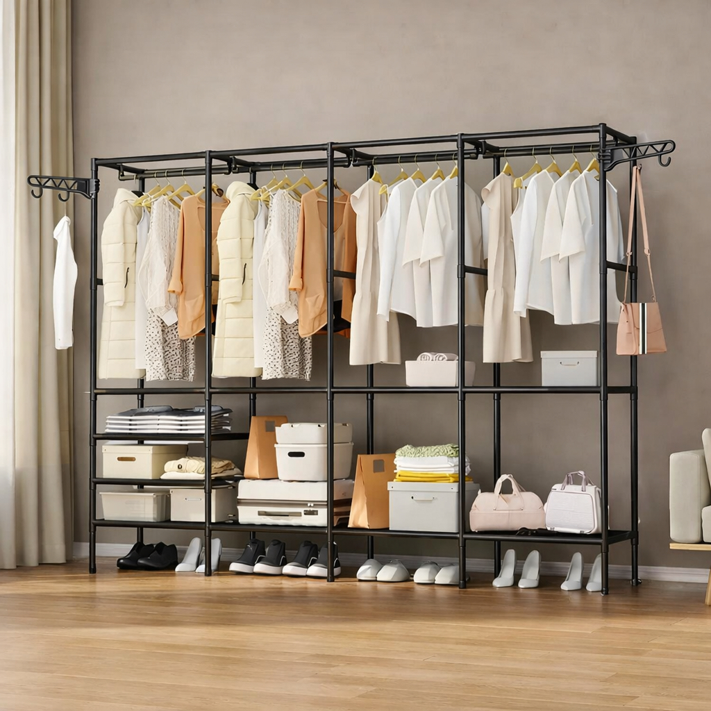 Arara de Roupas Grande com Sapateira e Prateleiras Cabideiro Multiuso Organizador Guarda-Roupa Portátil Aço Reforçado