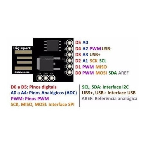 Arduino Digispark Attiny85 Usb I2c Spi Pwm Adc Robotica