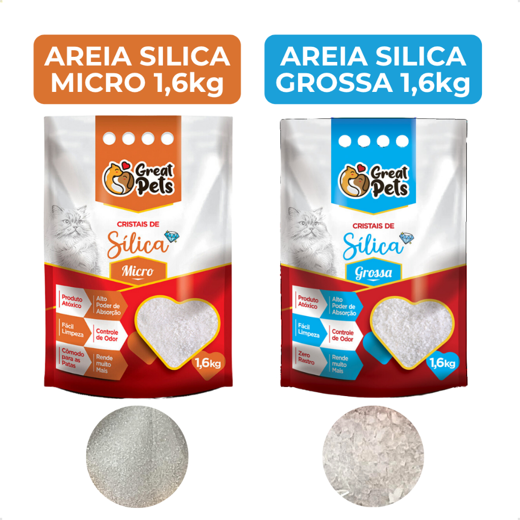 Areia Gato Sanitária Sílica Cristais 1,6kg Great Pets Areia Silica de Gato