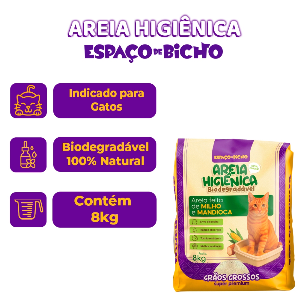 Areia Higiênica Biodegradável Espaço do Bicho Grãos Grossos 8kg – Milho e Mandioca (100% Natural)