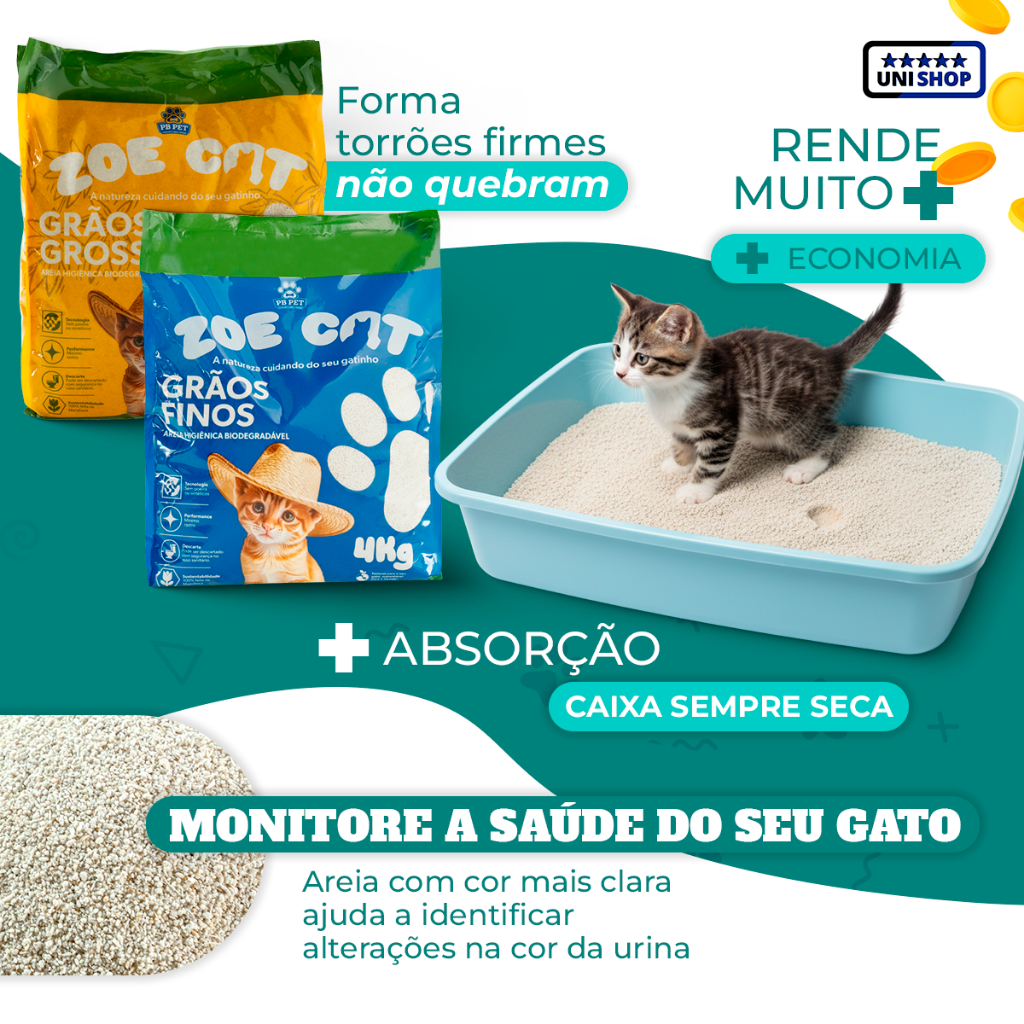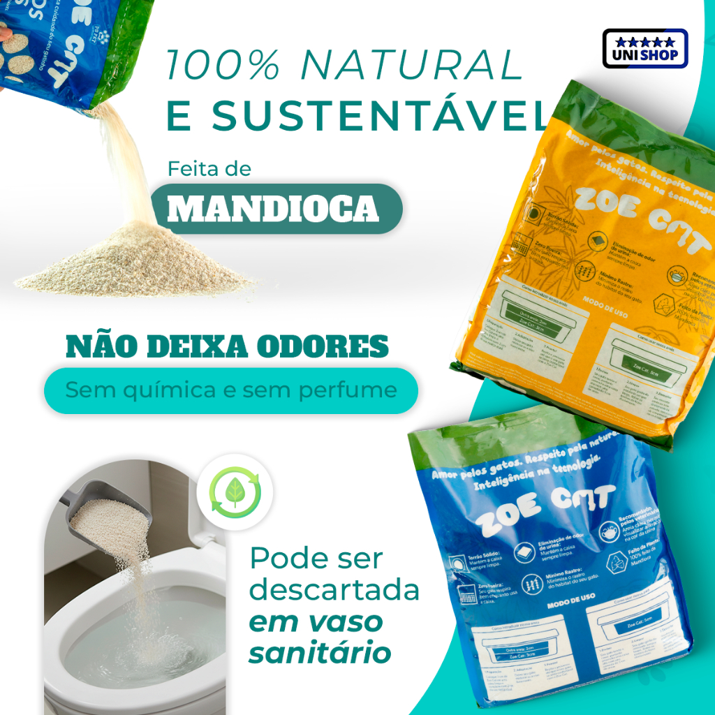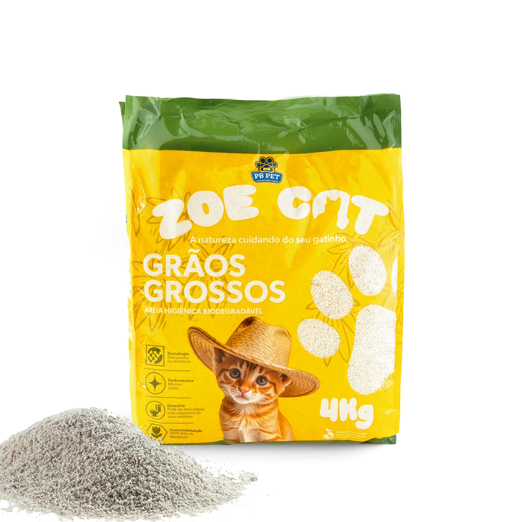 Areia Natural Zoecat 4kg Biodegradável 100% Mandioca Ultra Aglutinante Para Felinos Gatos