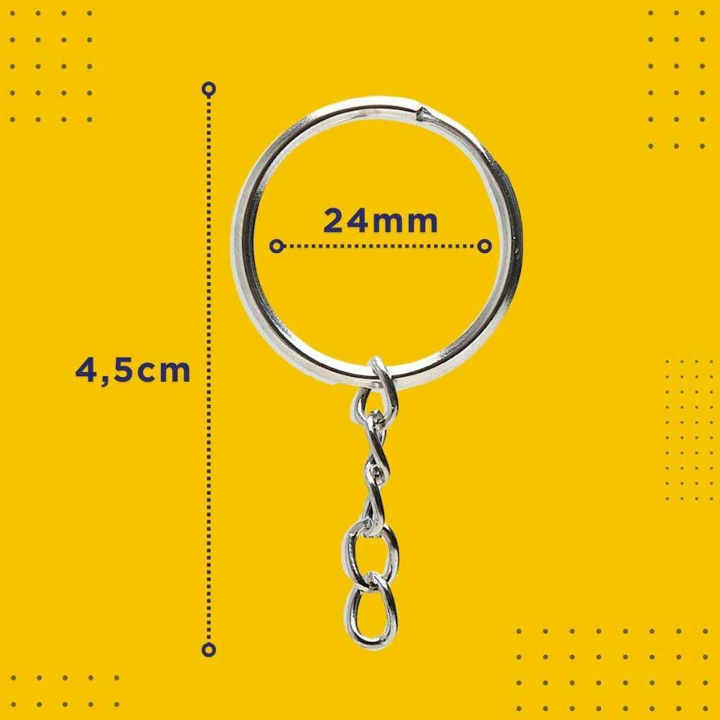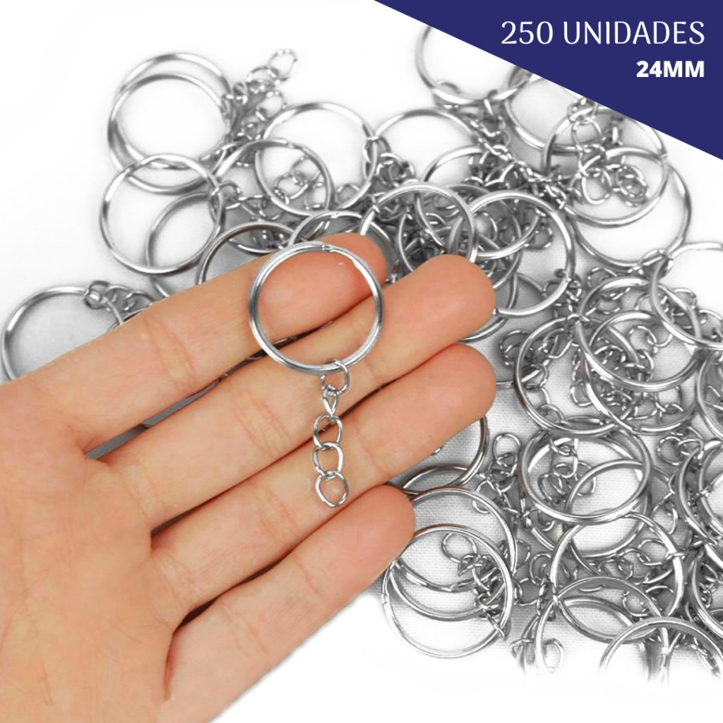 Argola Para Chaveiro Com Corrente 24mm - Com 100 Unidades - UMK