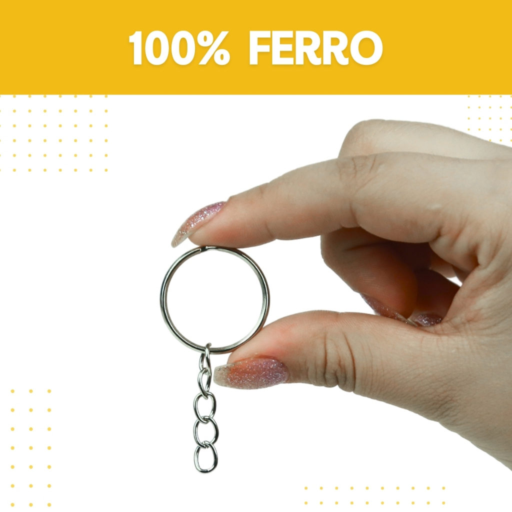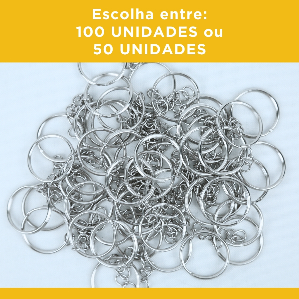 Argola Para Chaveiro Com Corrente - Tamanhos: 20mm / 24mm - Pacote Com 50 / 100 Unidades - NL