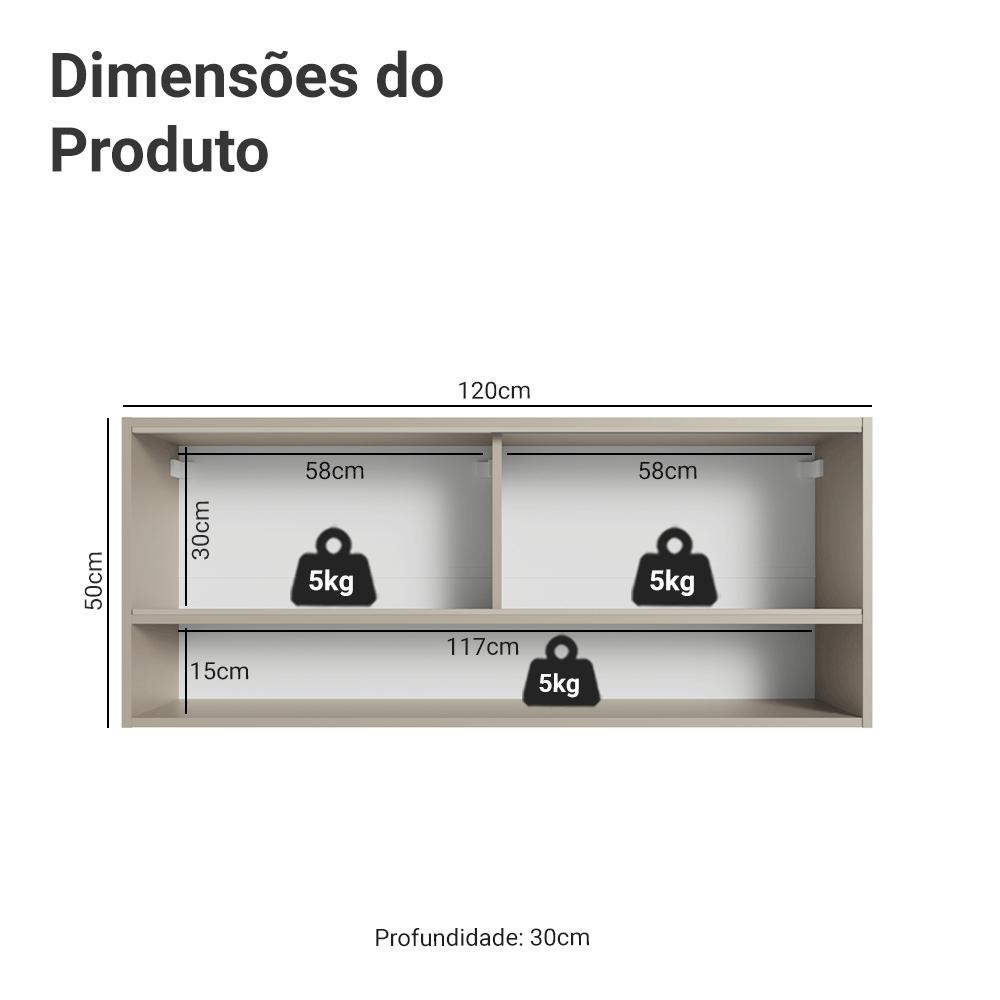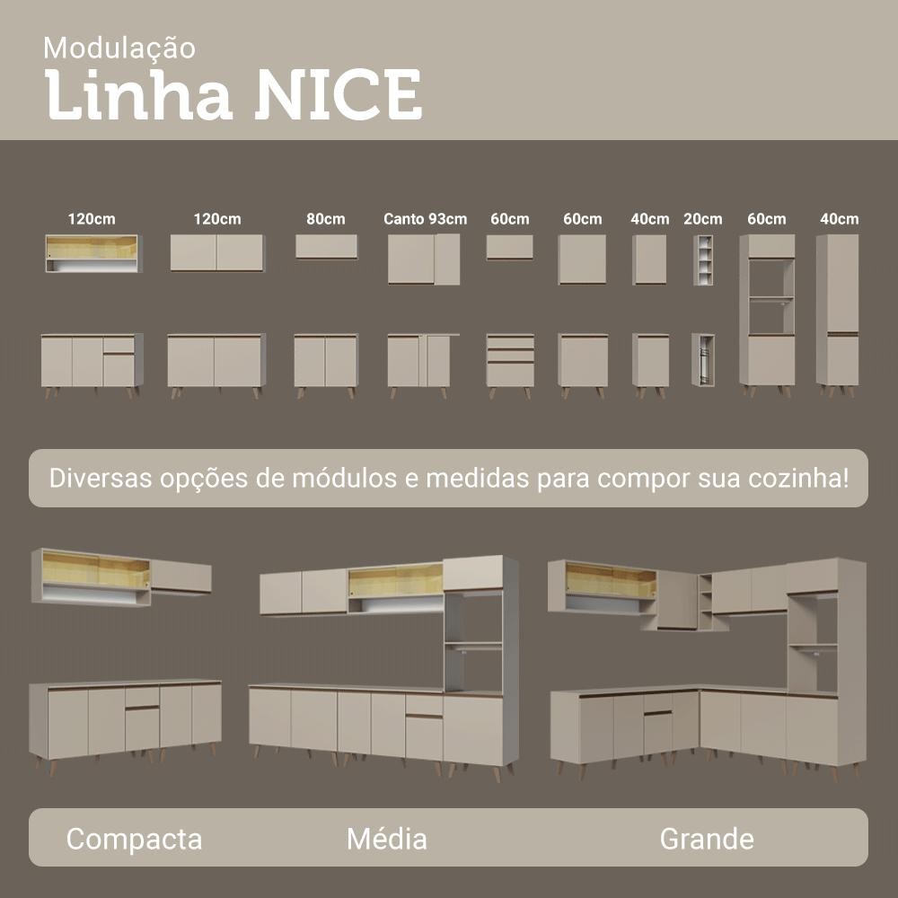 Armário Aéreo 2 Portas de Correr de Vidro Reflex e 1 Nicho Crema Nice Madesa
