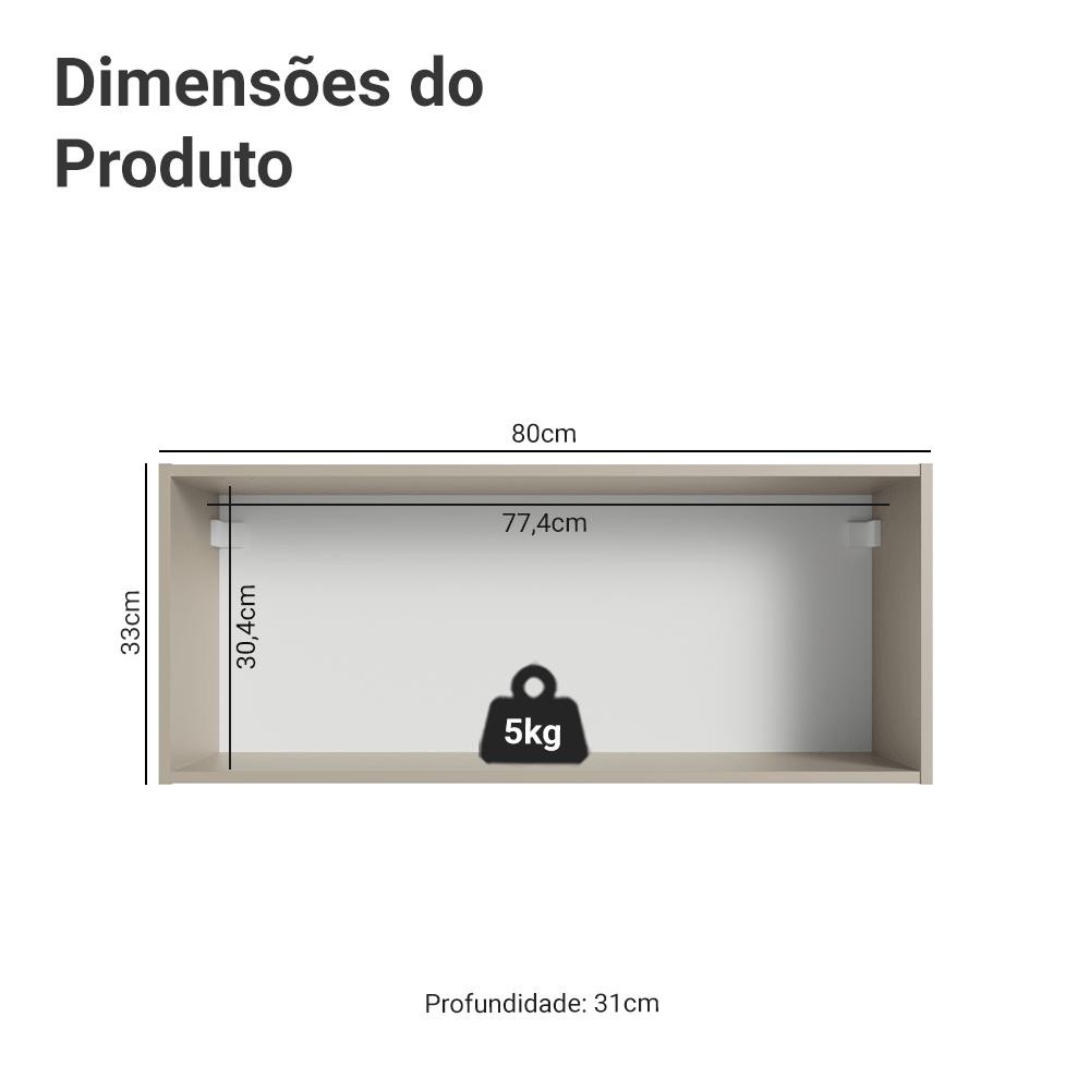 Armário Aéreo 80 cm 1 Porta Basculante Crema Nice Madesa