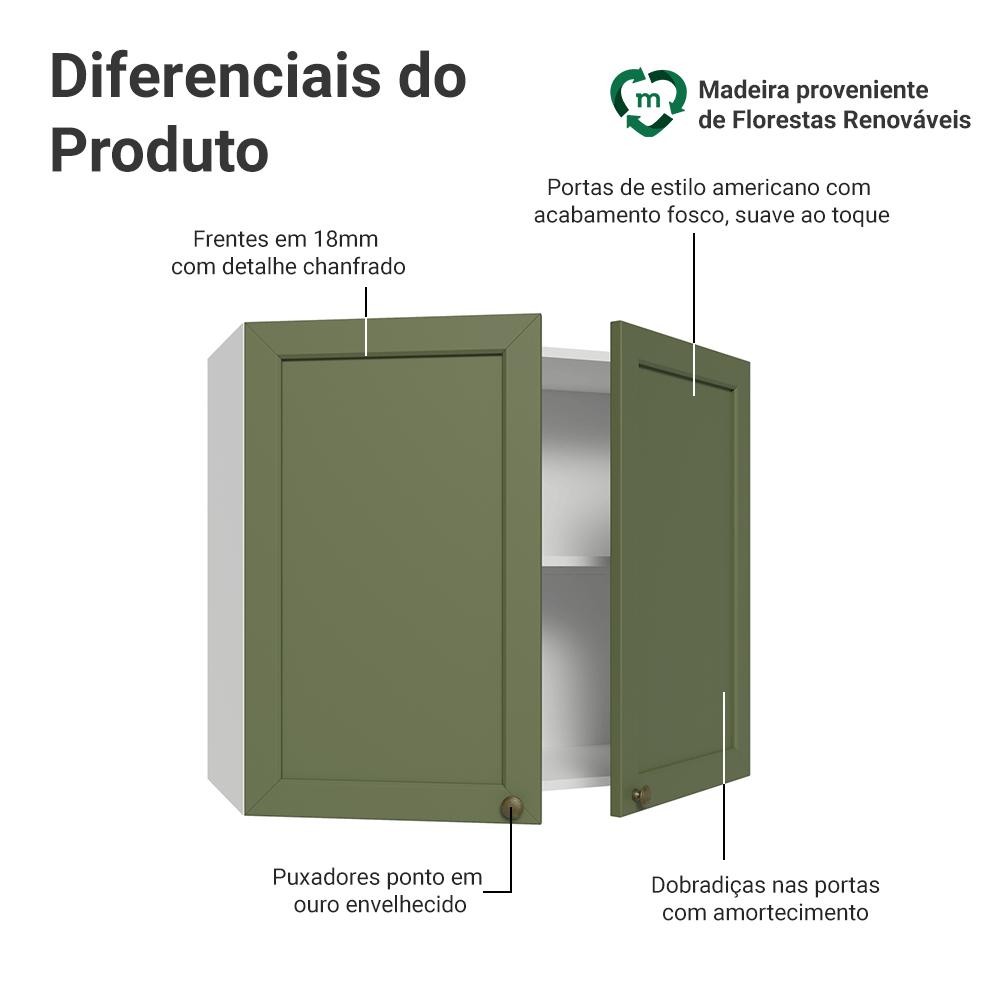 Armário Aéreo 80 cm 2 Portas Branco/Verde Vik Madesa