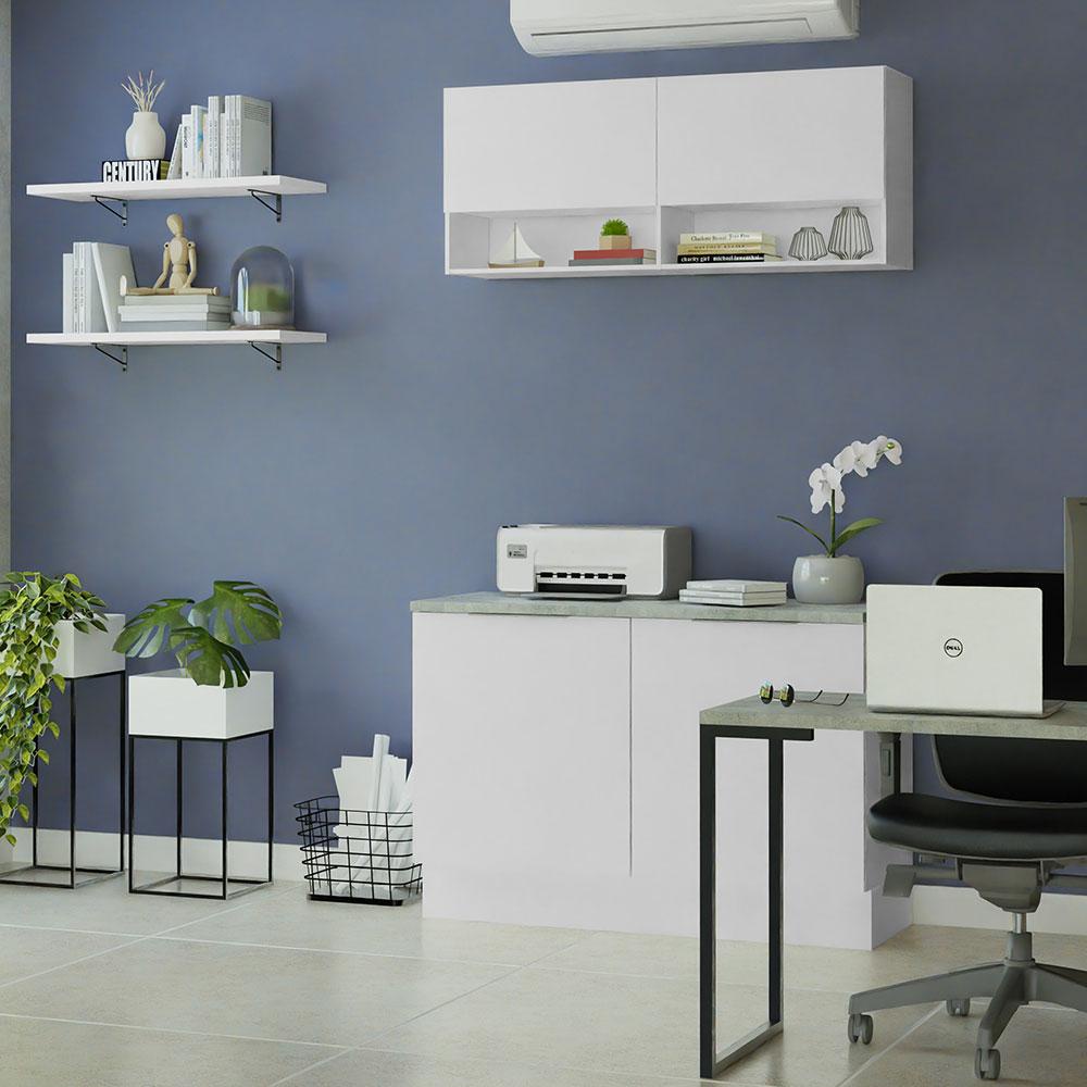 Armário Aéreo para Escritório com Nicho e Prateleira 120cm Branco Madesa