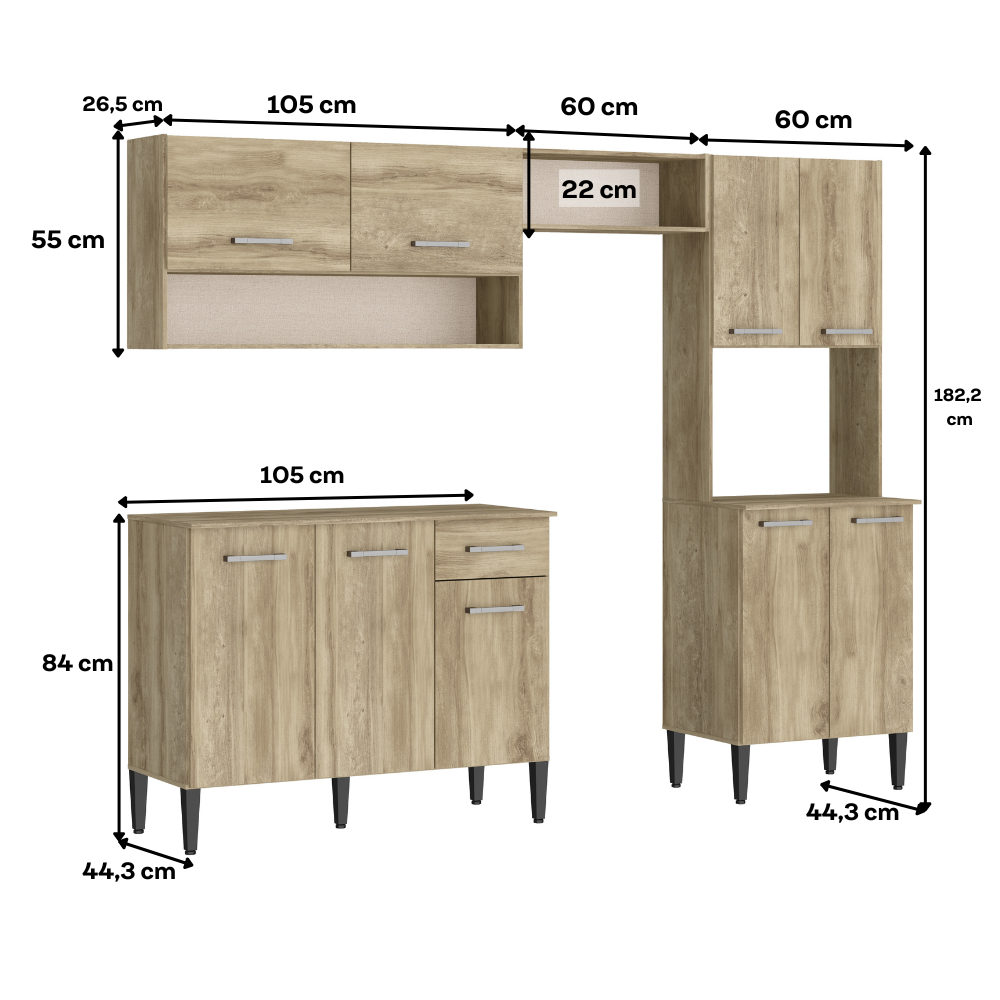 Armário Cozinha Compacta Arizona Essence Carvalho Carraro