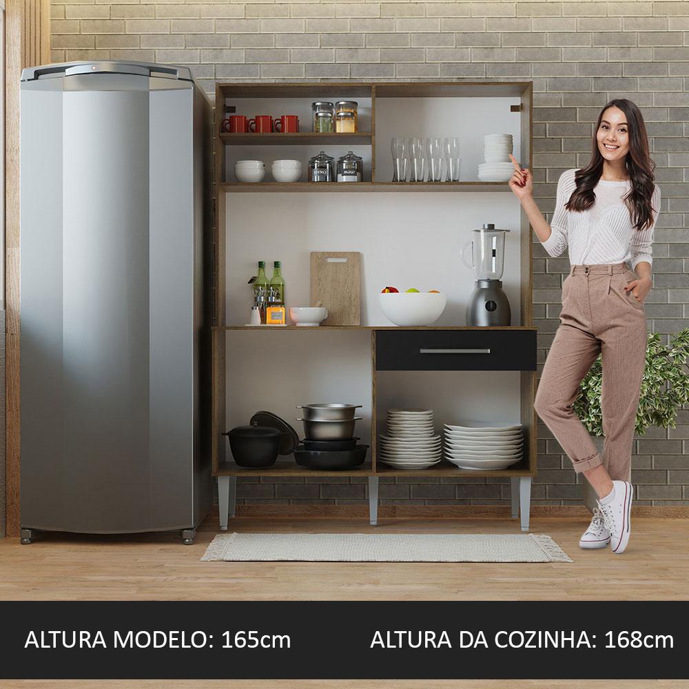 Armário de Cozinha Compacta 120cm Rustic/Preto Life Madesa