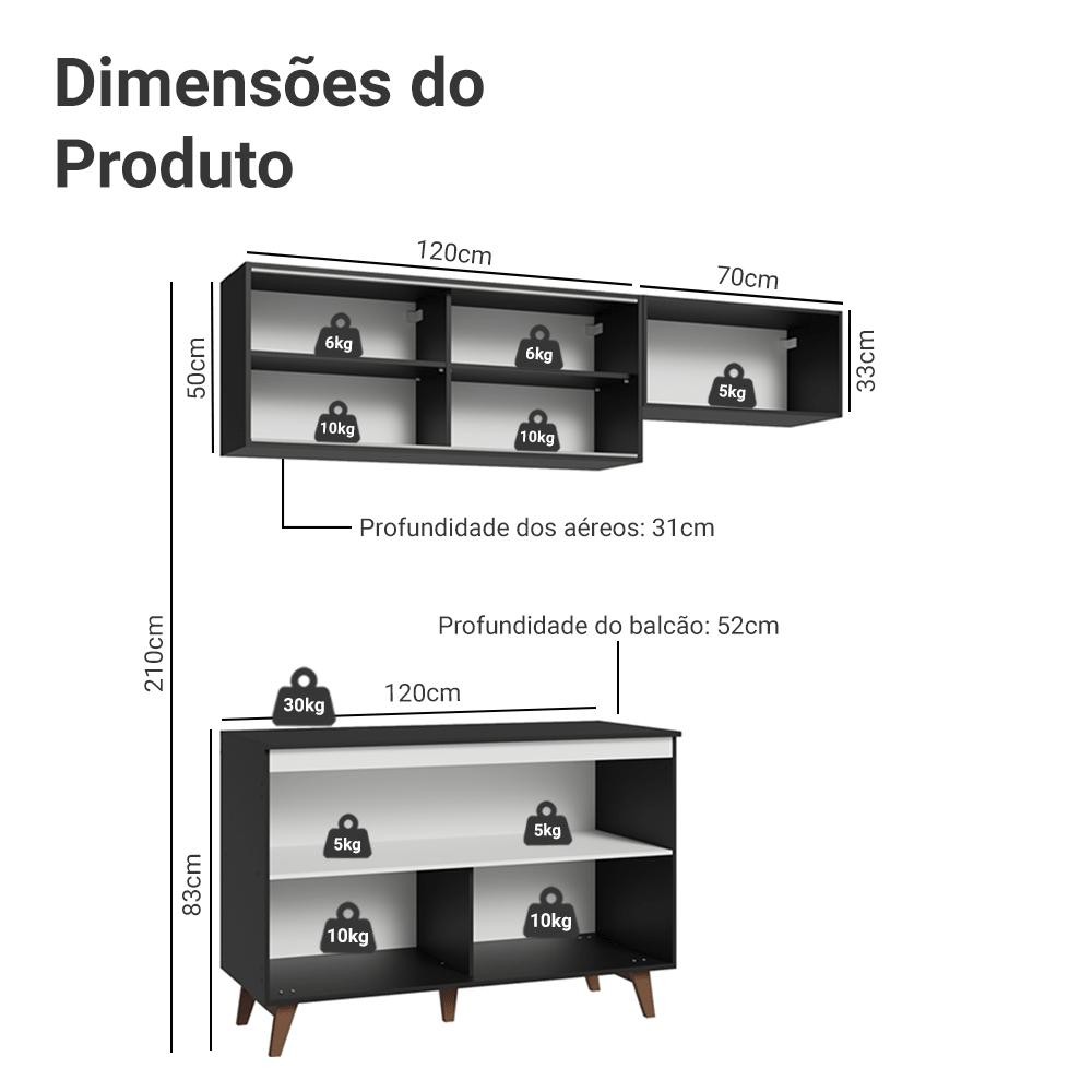 Armário de Cozinha Compacta 190cm Preto Reims Madesa 09