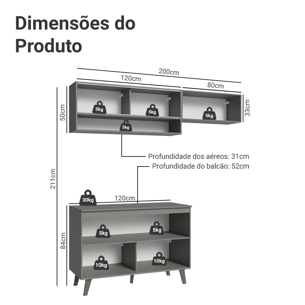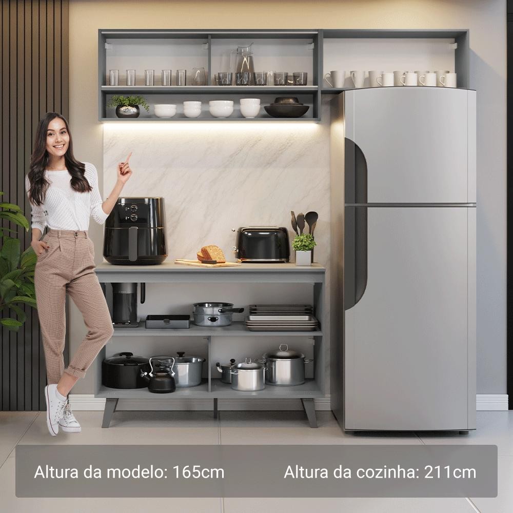 Armário de Cozinha Compacta 200cm Cinza Nice Madesa XA10
