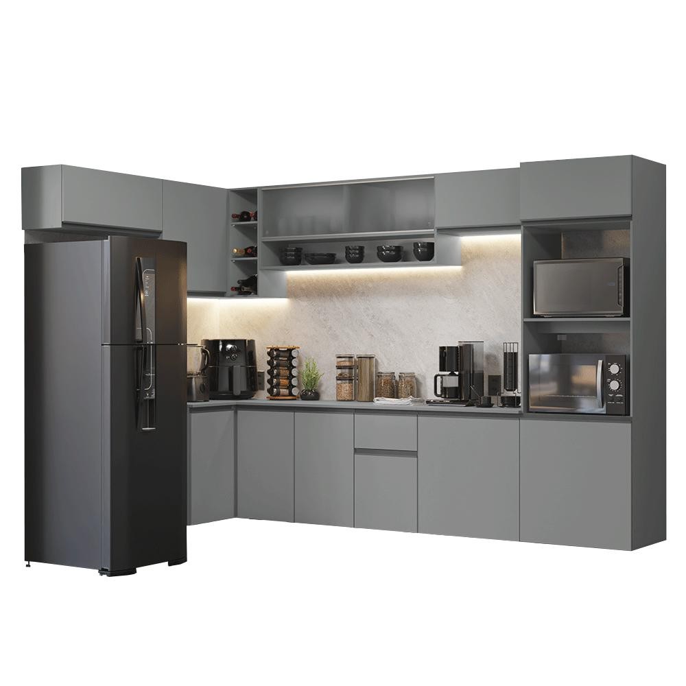 Armário de Cozinha Compacta de Canto Suspenso 465cm Cinza Nice Madesa 02