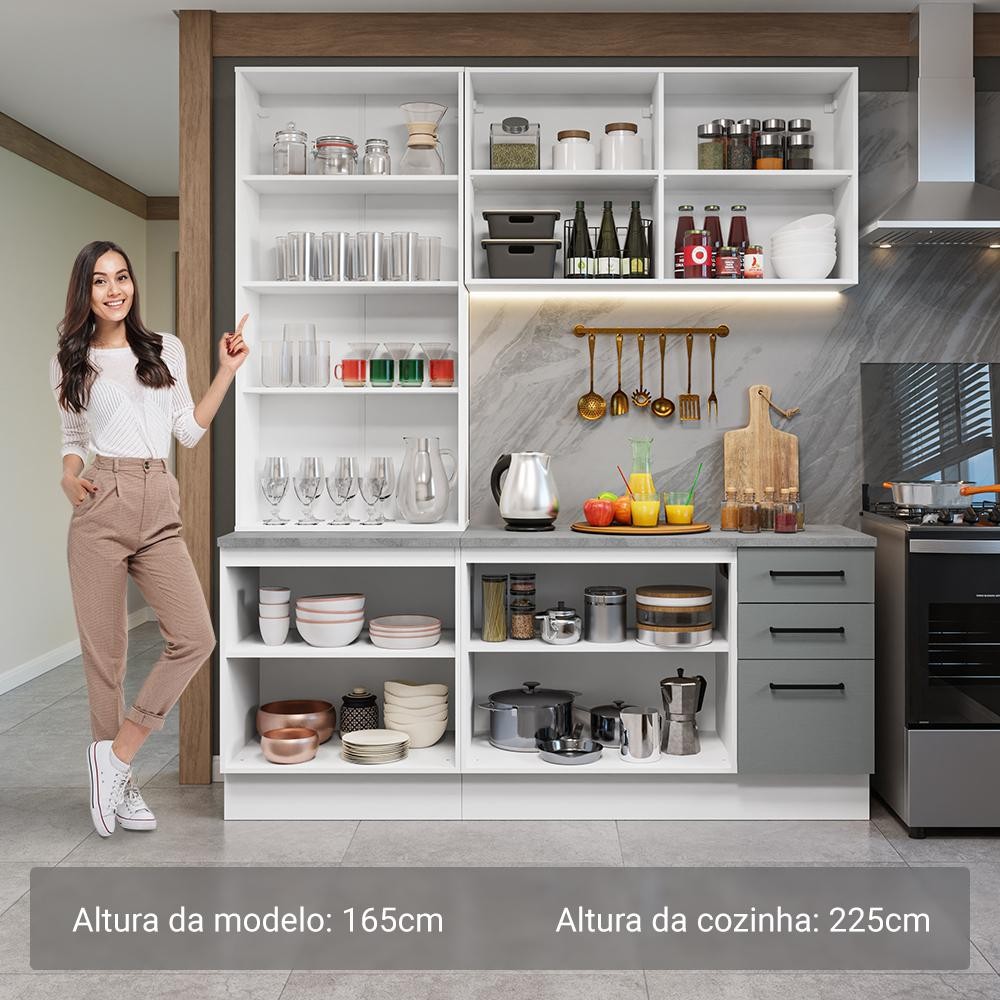 Armário de Cozinha Completa 190cm com Cristaleira Branco/Cinza Agata Madesa 01