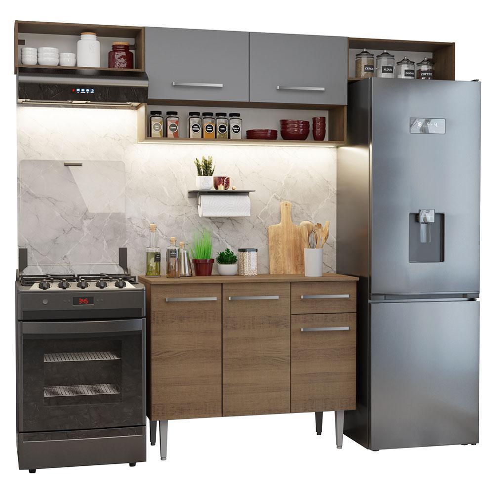 Armário de Cozinha Completa 225cm Rustic/Cinza Emilly Madesa 01