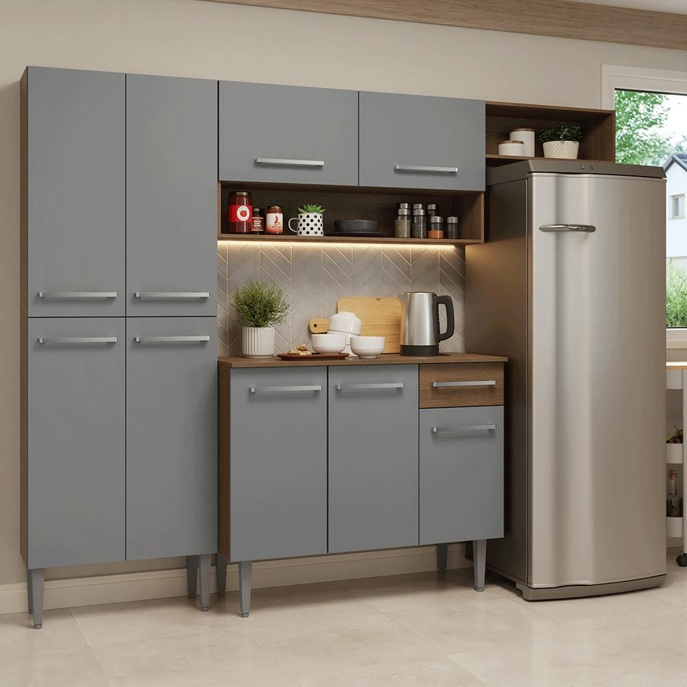 Armário de Cozinha Completa 229cm Rustic/Cinza Emilly Madesa 016