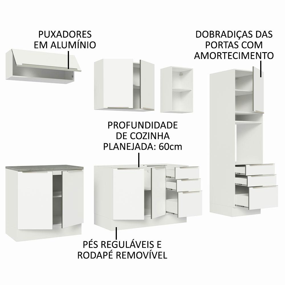 Armário de Cozinha Completa 260cm Branco Veludo Lux Madesa 08