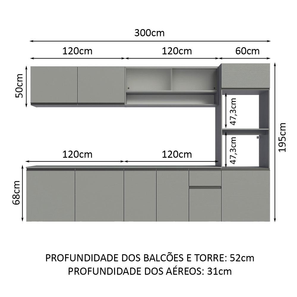 Armário de Cozinha Completa 300 cm Suspenso Nice Madesa 04
