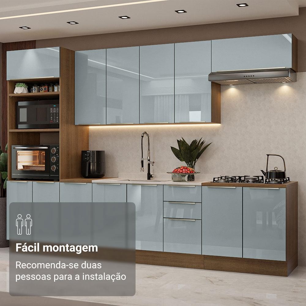 Armário de Cozinha Completa 310cm Rustic/Cinza Lux Madesa 02