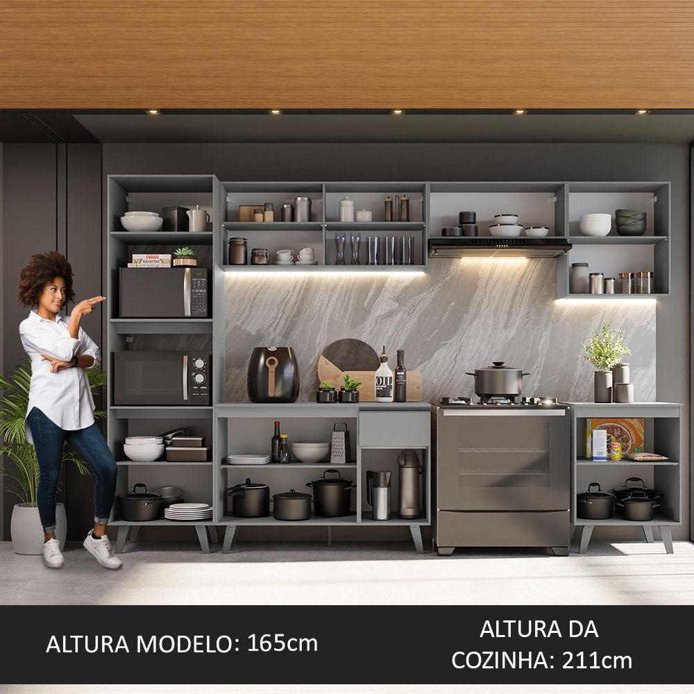 Armário de Cozinha Completa 320cm Cinza Nice Madesa 01