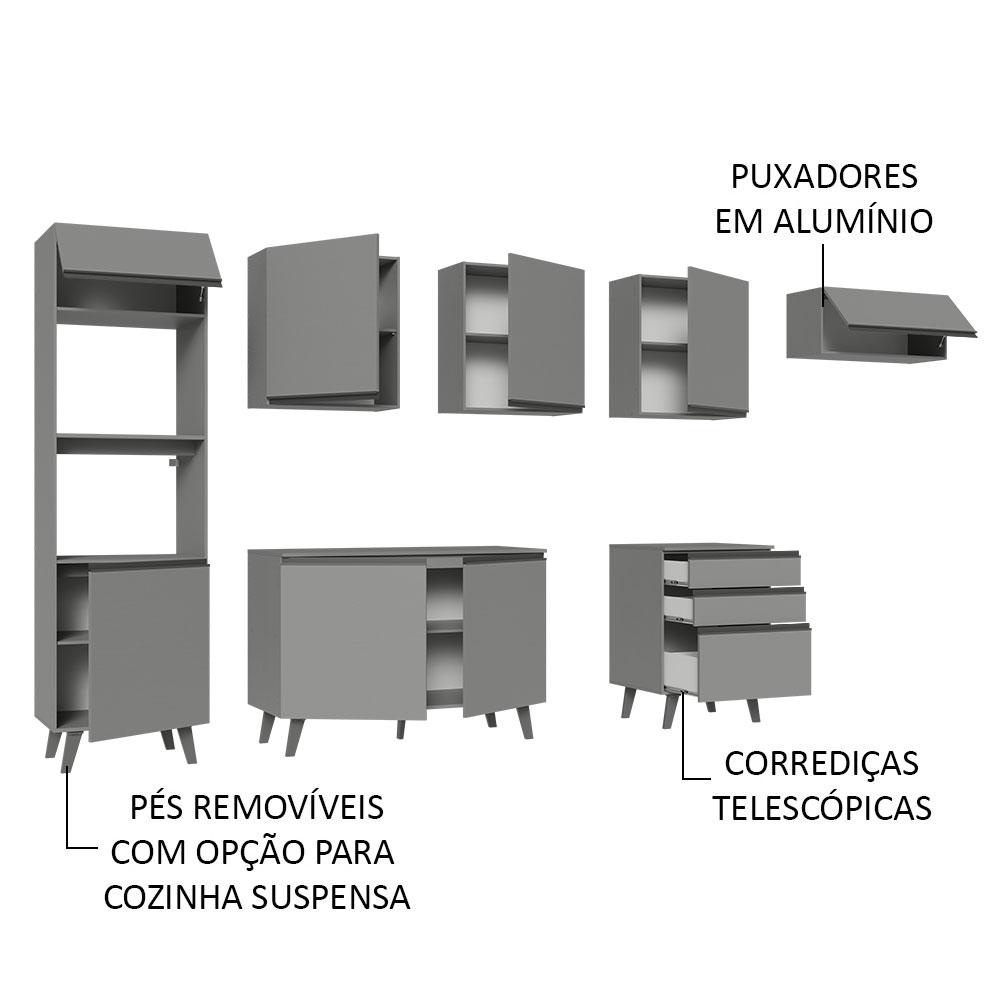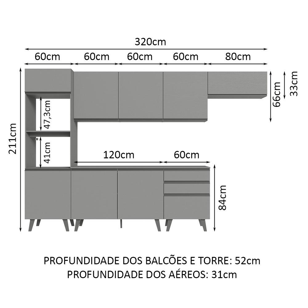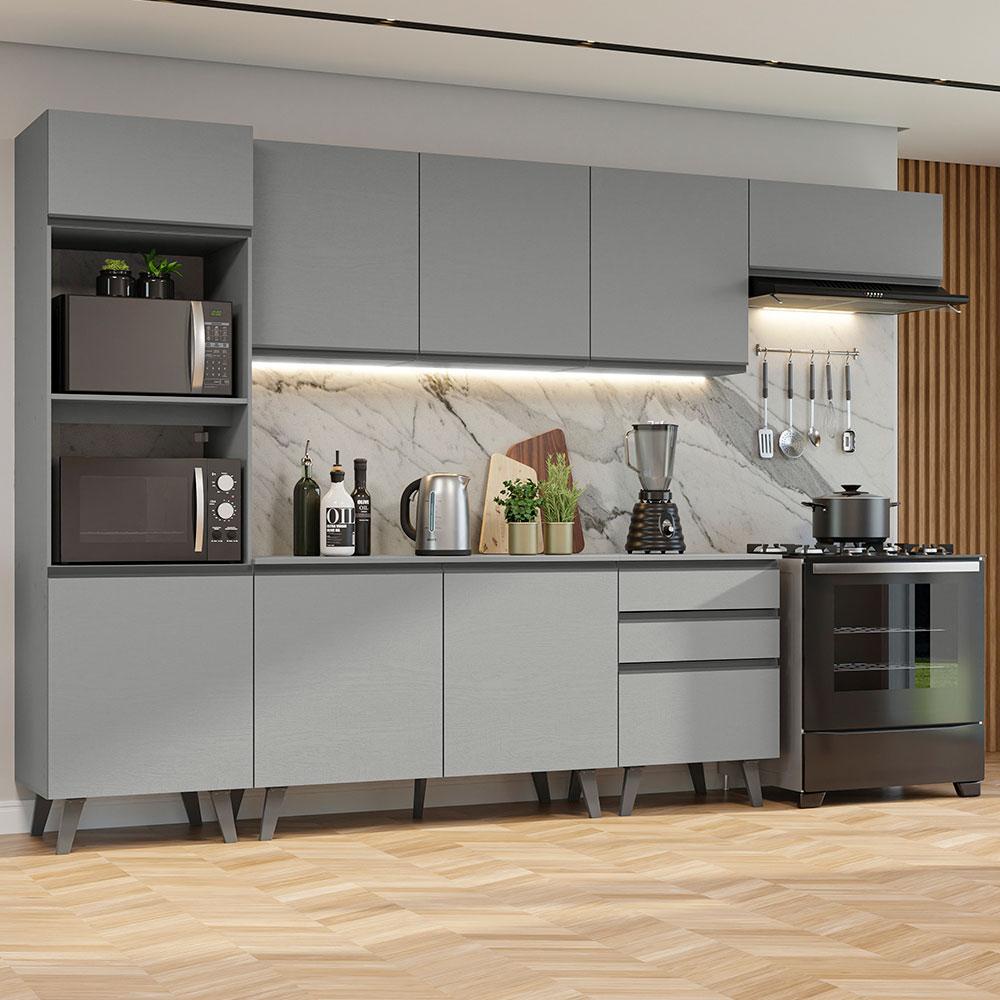 Armário de Cozinha Completa 320cm Cinza Nice Madesa 08